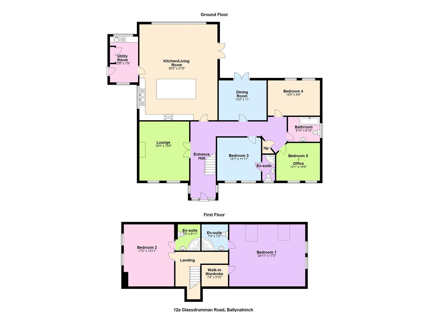 Set within an idyllic, quiet pastoral landscape 12A Glassdrumman Road presents an exceptional opportunity to acquire a stunning detached home. This remarkable property boasts five spacious bedrooms and four well-appointed bathrooms, making it ideal for families or those seeking ample space for guests.