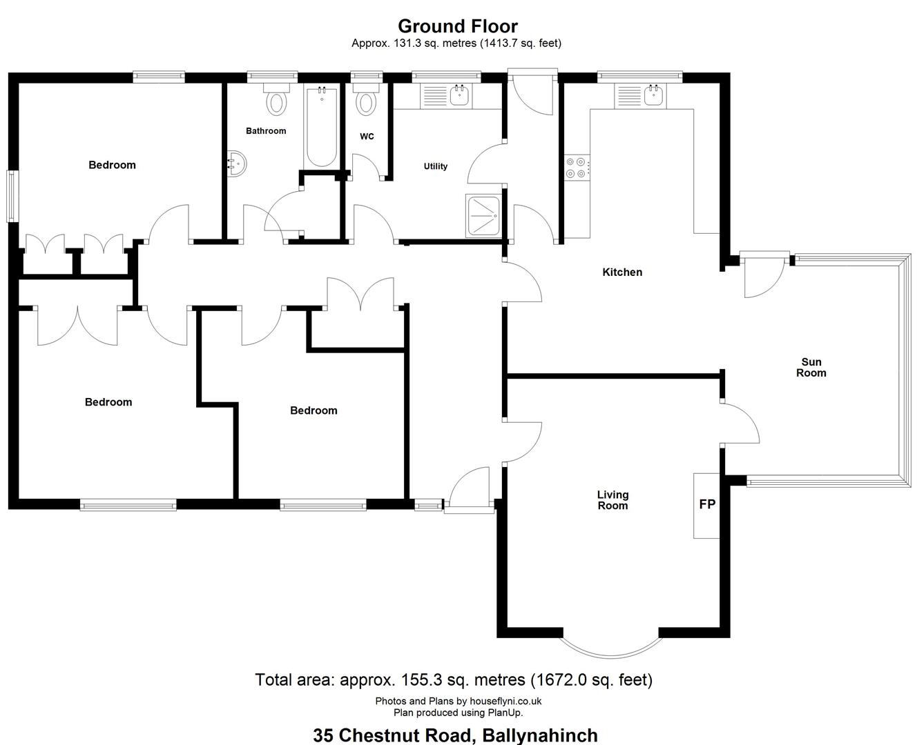 The property offers well-proportioned accommodation on one level and is suitable for most family needs. Internally, the accommodation includes a lounge and bright sunroom overlooking the gardens, a kitchen, and a separate utility room. There are three bedrooms and a family bathroom.