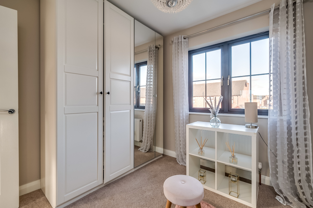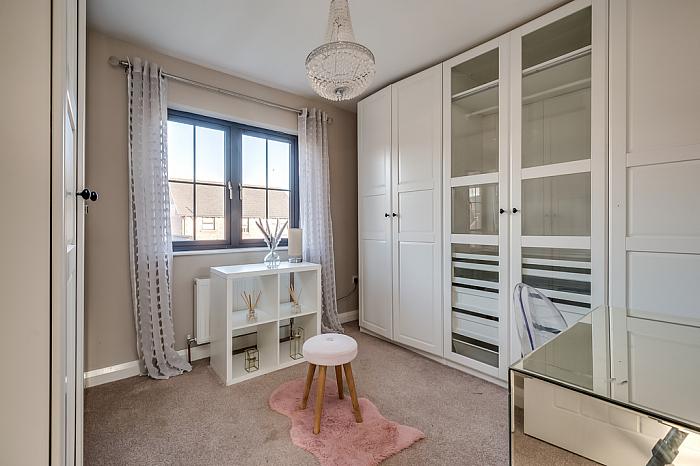 Fitted carpet, uPVC double glazed windows x 2, Double panel radiator, Built in wardrobe.