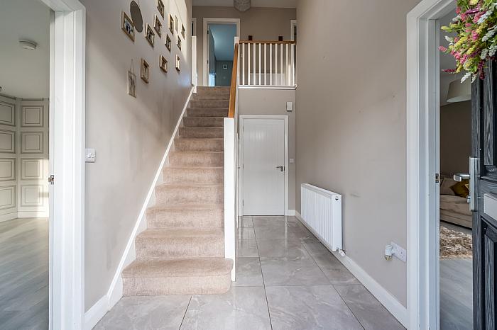 uPVC double glazed window, Single panel radiator, Wooden bannister, Fitted carpet, Hot press, Access to roof-space.