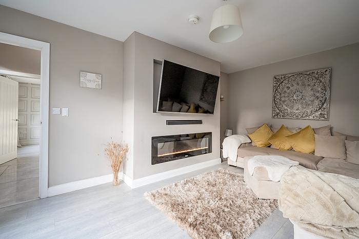 Wood effect laminate floor, Double panel radiator, uPVC double glazed windows x 2, Media wall, Electric fire.