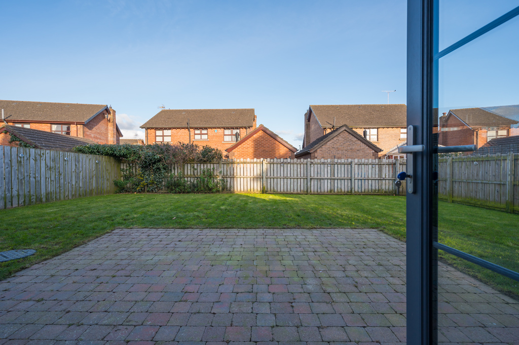 Paved patio area, Lawn, Timber fence, Security light, Outside tap.