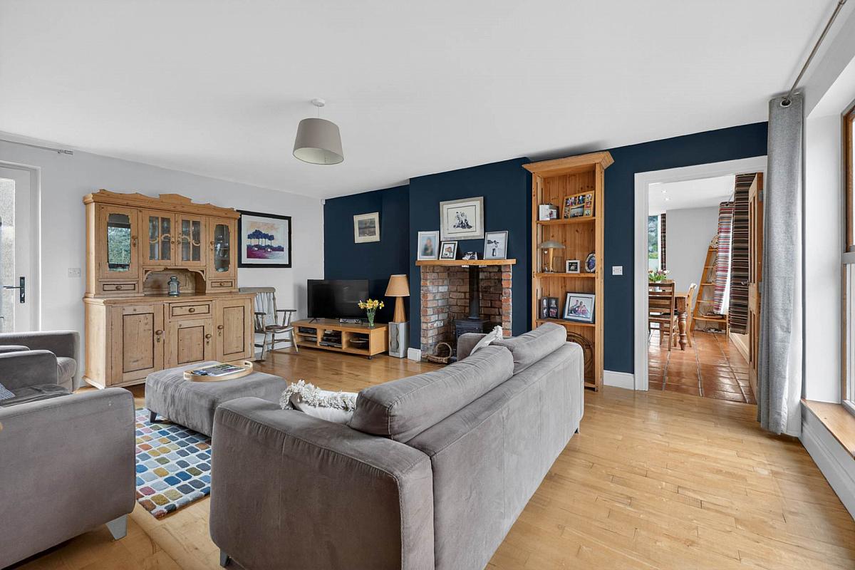 The ground floor offers a welcoming sense of arrival, with a bright entrance porch leading to a spacious hallway featuring limestone tiled flooring and a striking ash staircase. The home provides four reception rooms, including an elegant lounge with vaulted ceiling and feature stove, a formal dining room, and a comfortable family room - ideal for both entertaining and everyday living.