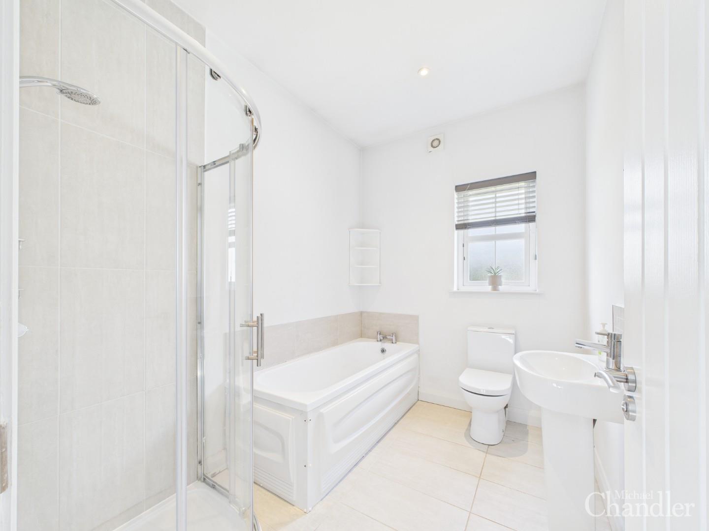Upstairs are three generously sized double bedrooms, with the master benefiting from an ensuite shower room and an additional separate family bathroom ideal for families seeking extra space.