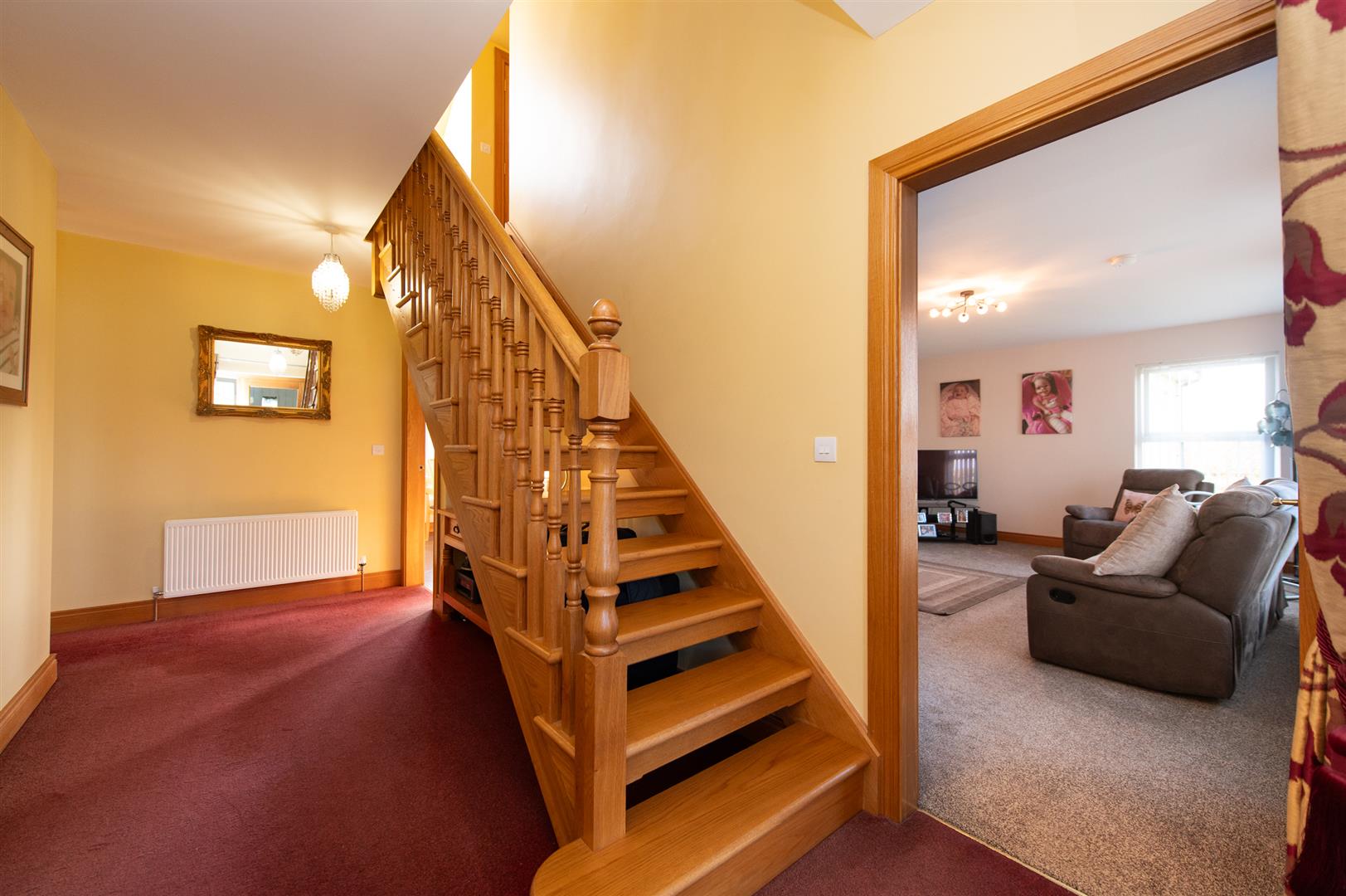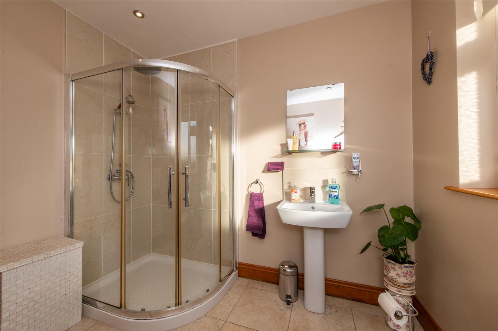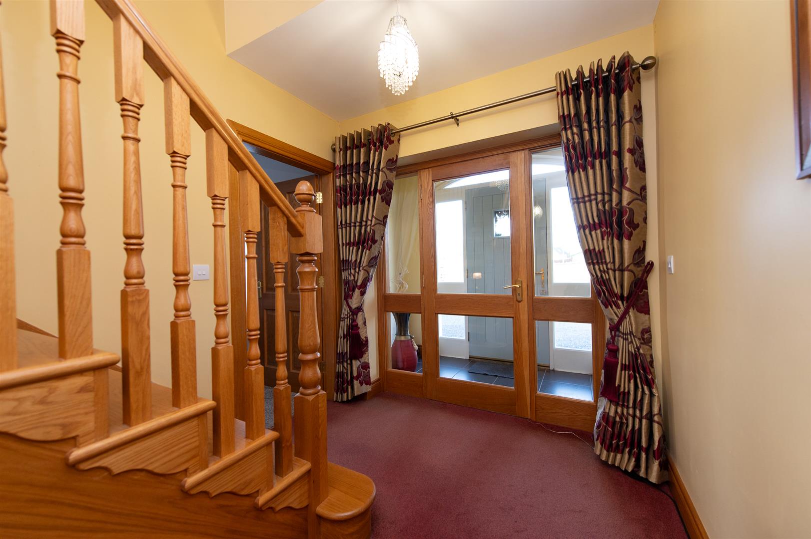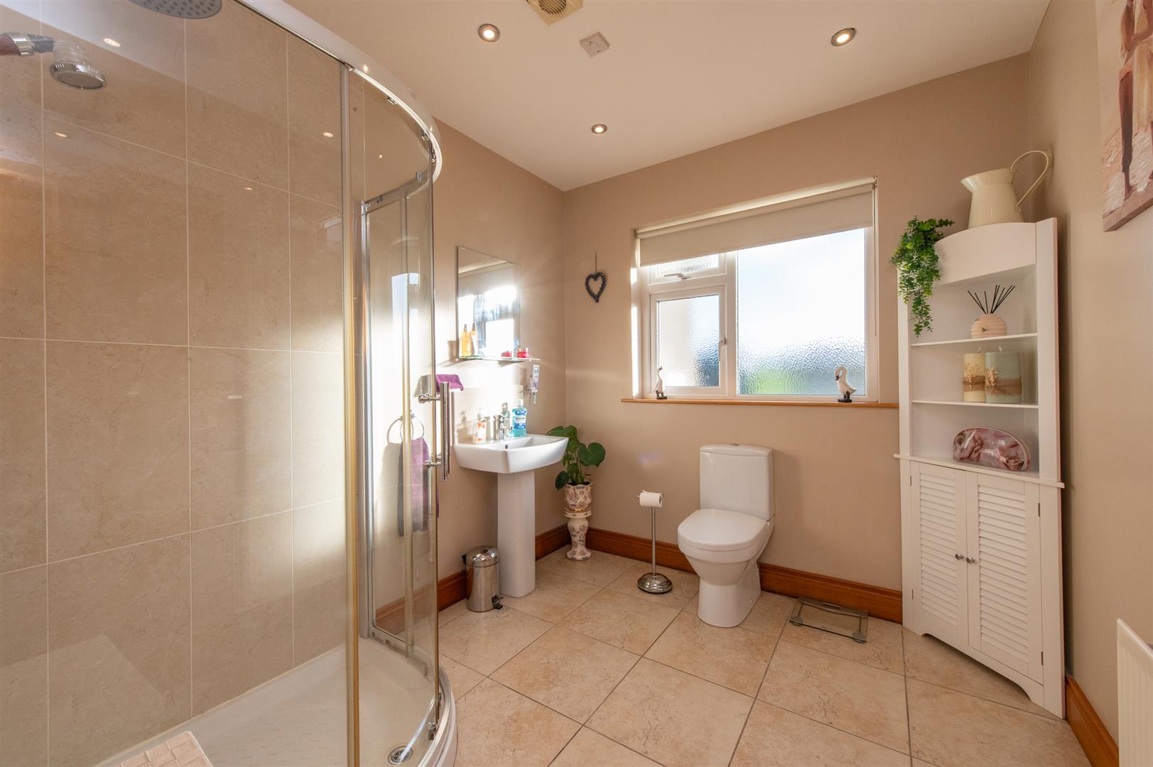 Tiled entrance porch leading into entrance hallway laid in carpet with ample storage cupboards, linen closet and stunning Oak open tread staircase to the first floor. Spacious Lounge with carpet laid and open fire. Sun Room with laminate flooring and a striking brick fireplace with Oak Mantel and Stove installed. Quality Kitchen fitted with fully tiled floor, recessed lighting throughout. Kitchen comprises integrated dishwasher & fridge freezer with plenty of other unit space for busy family life. Utility area with additional sink unit & plumbed for washing machine with access to the ground floor W.C. Ground floor shower room with tiled flooring & recessed lighting comprising corner shower, W.C and wash hand basin.