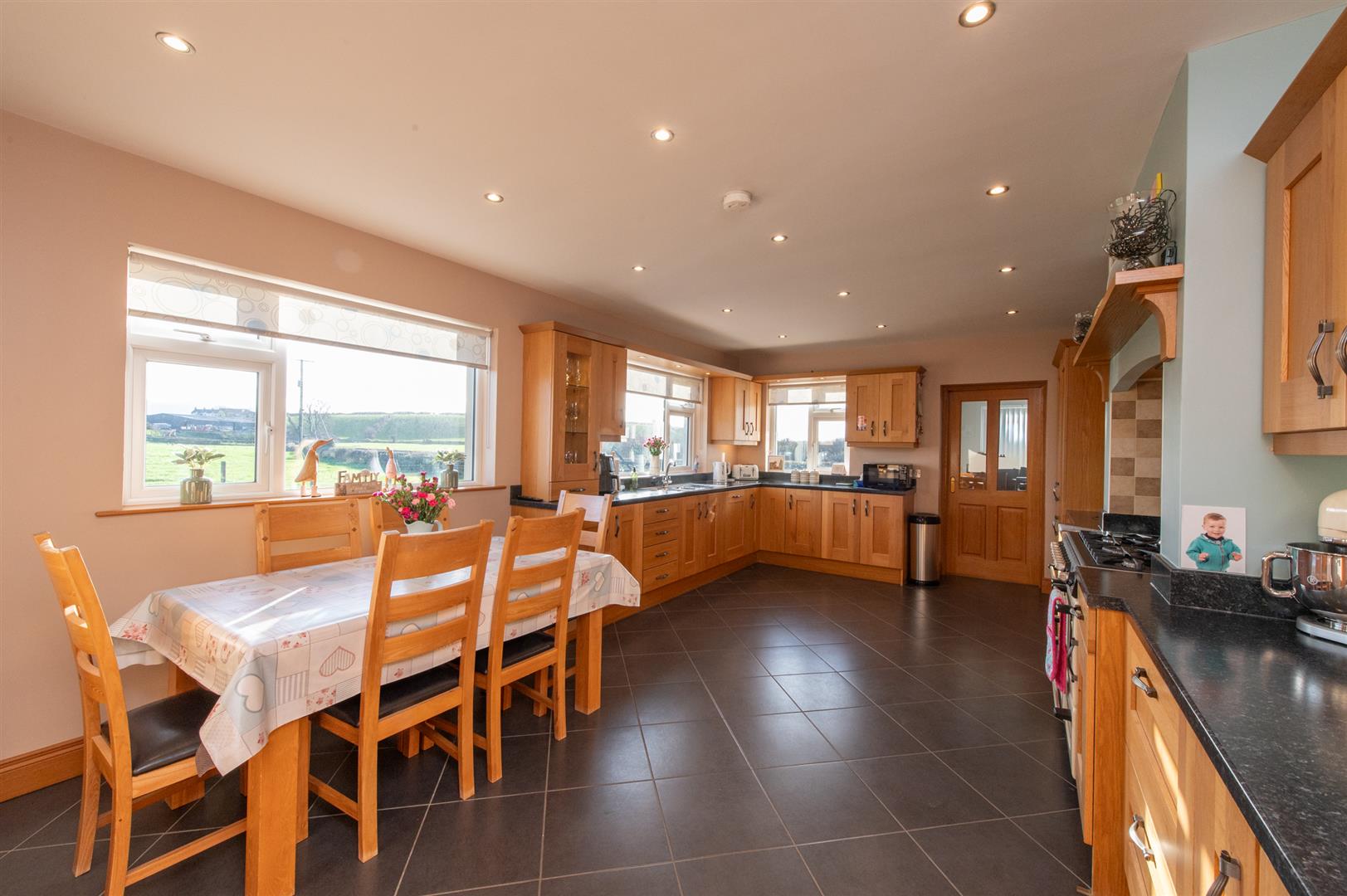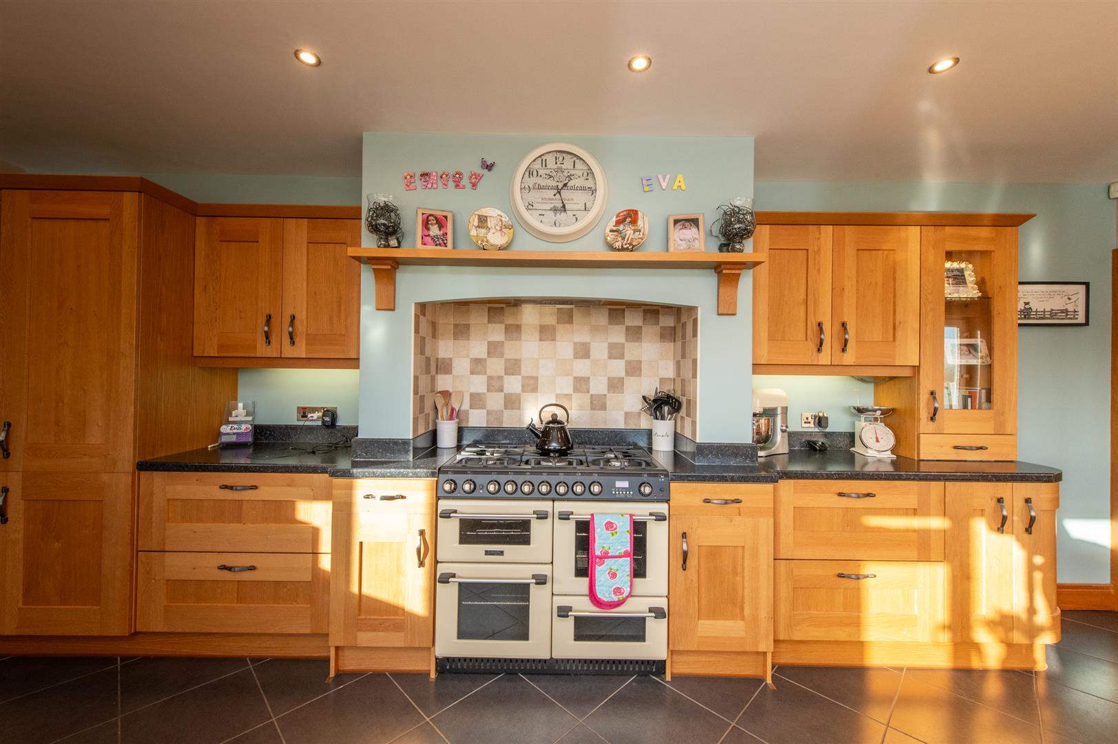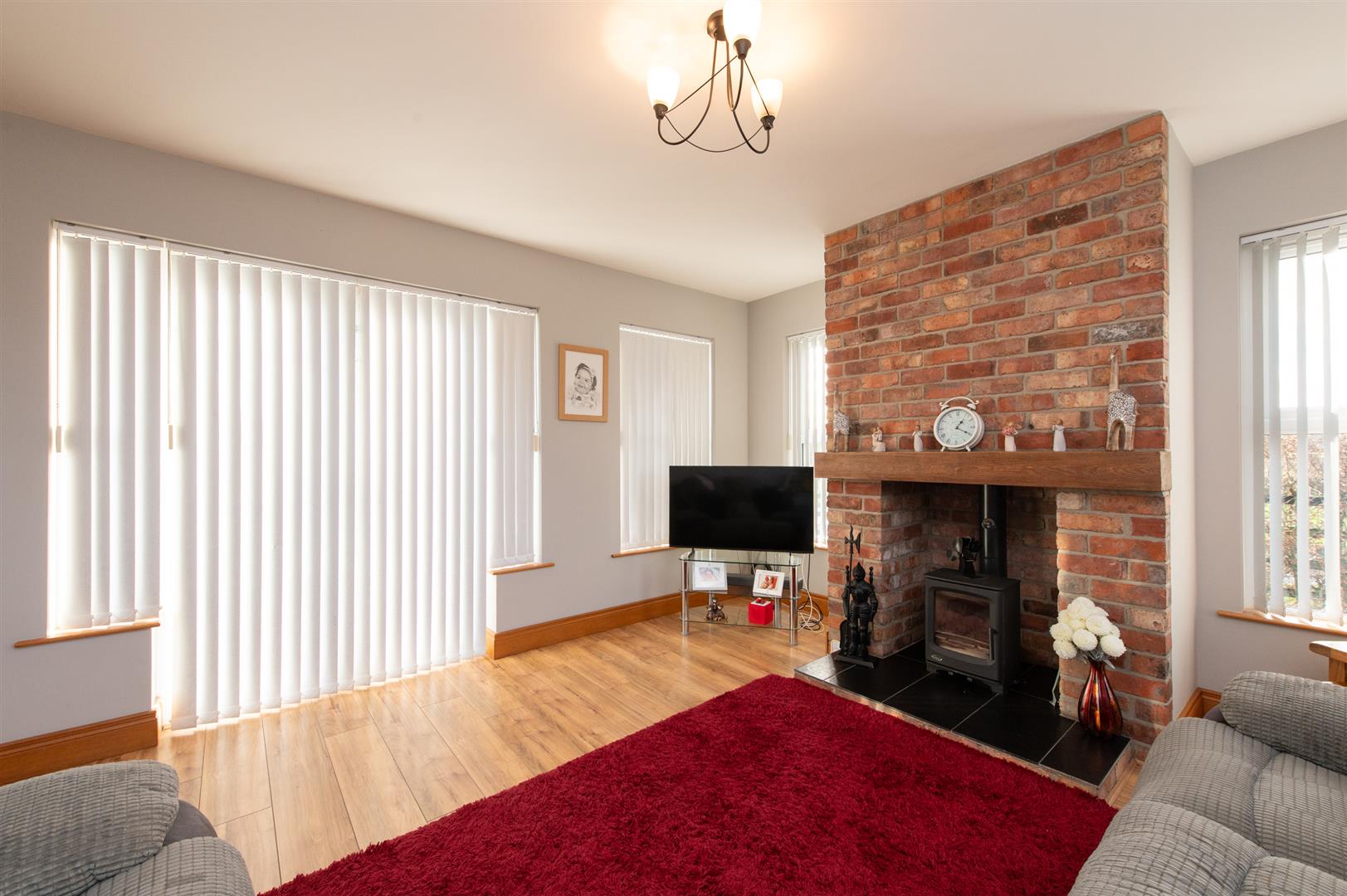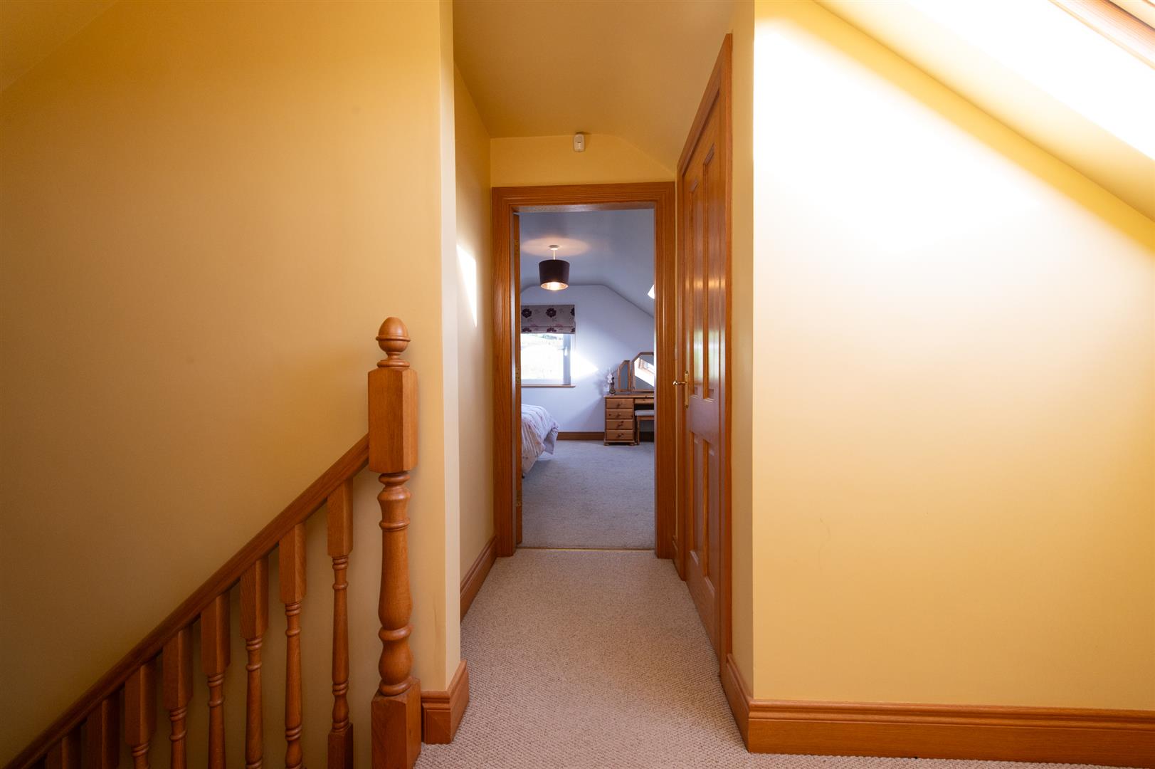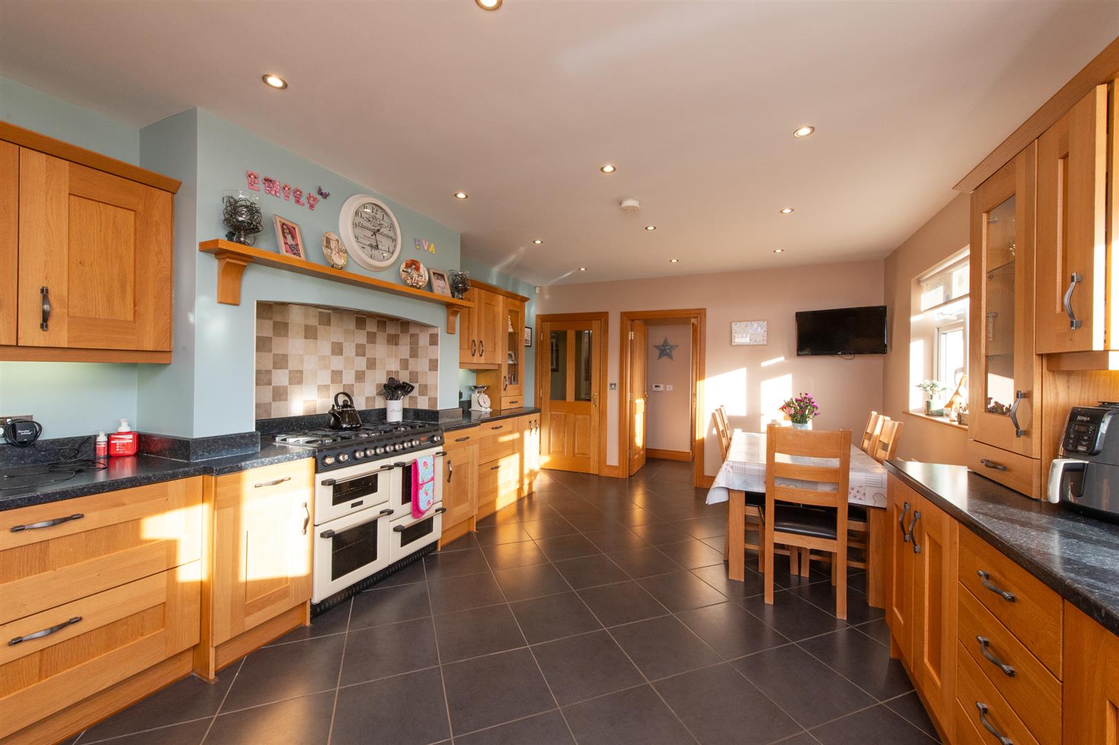 Tiled entrance porch leading into entrance hallway laid in carpet with ample storage cupboards, linen closet and stunning Oak open tread staircase to the first floor. Spacious Lounge with carpet laid and open fire. Sun Room with laminate flooring and a striking brick fireplace with Oak Mantel and Stove installed. Quality Kitchen fitted with fully tiled floor, recessed lighting throughout. Kitchen comprises integrated dishwasher & fridge freezer with plenty of other unit space for busy family life. Utility area with additional sink unit & plumbed for washing machine with access to the ground floor W.C. Ground floor shower room with tiled flooring & recessed lighting comprising corner shower, W.C and wash hand basin.