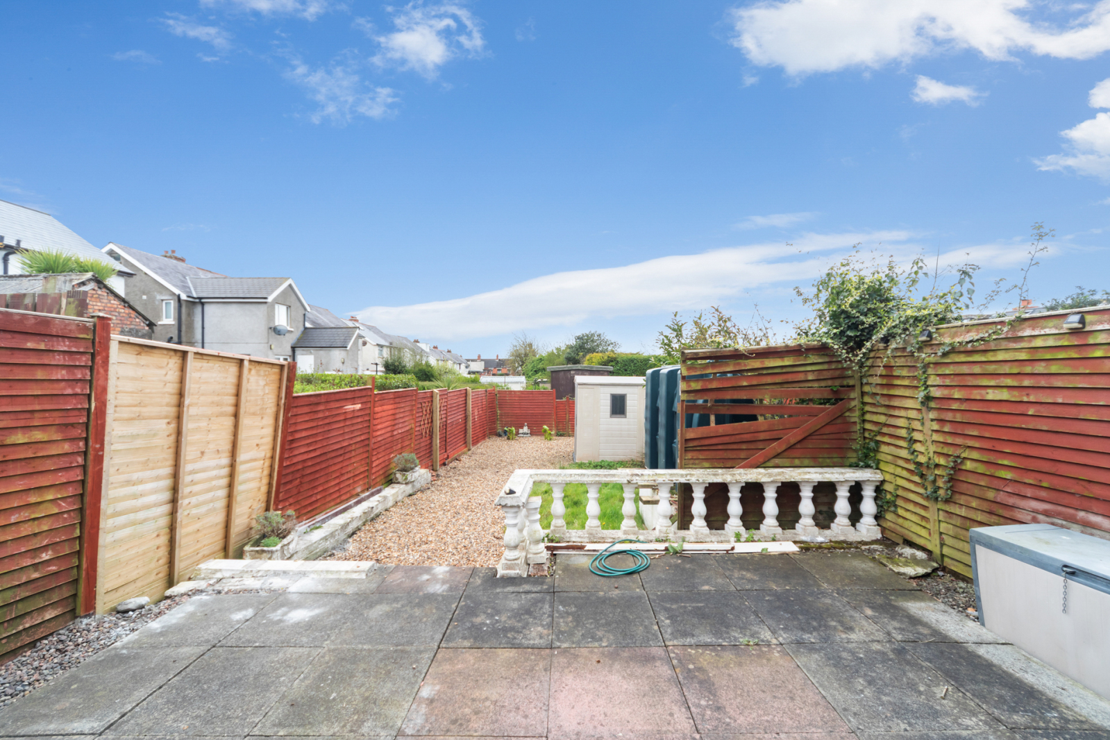 South facing garden, garden laid in lawn, patio area, boiler, shed and outside tap.