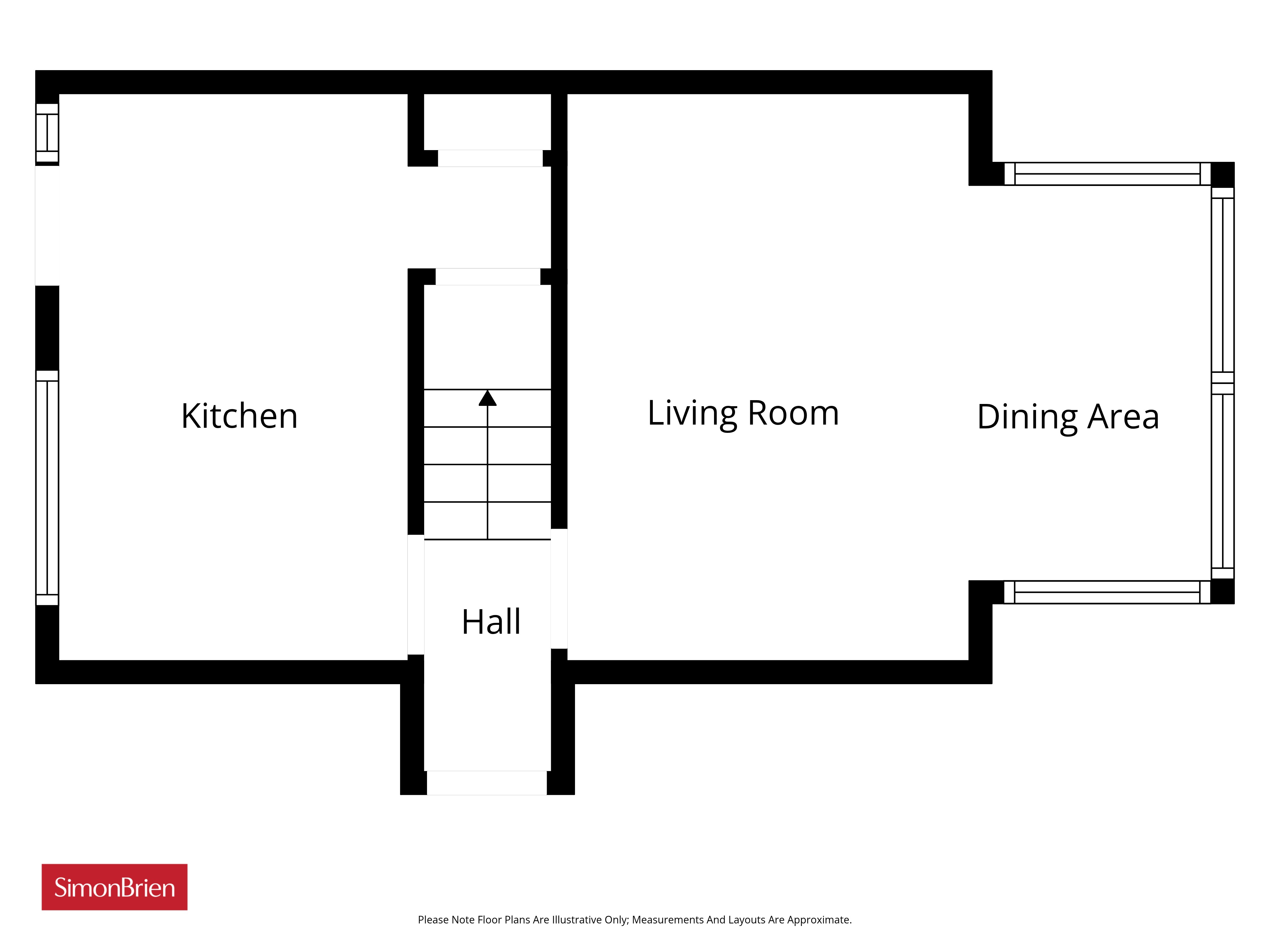Laminate floor and large bay windows.