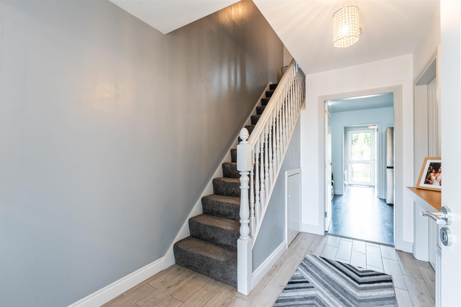 The property offers a spacious living room leading through to a modern open plan kitchen/dining area with fitted kitchen with integrated appliances, complemented by a utility room and a convenient downstairs w/c.