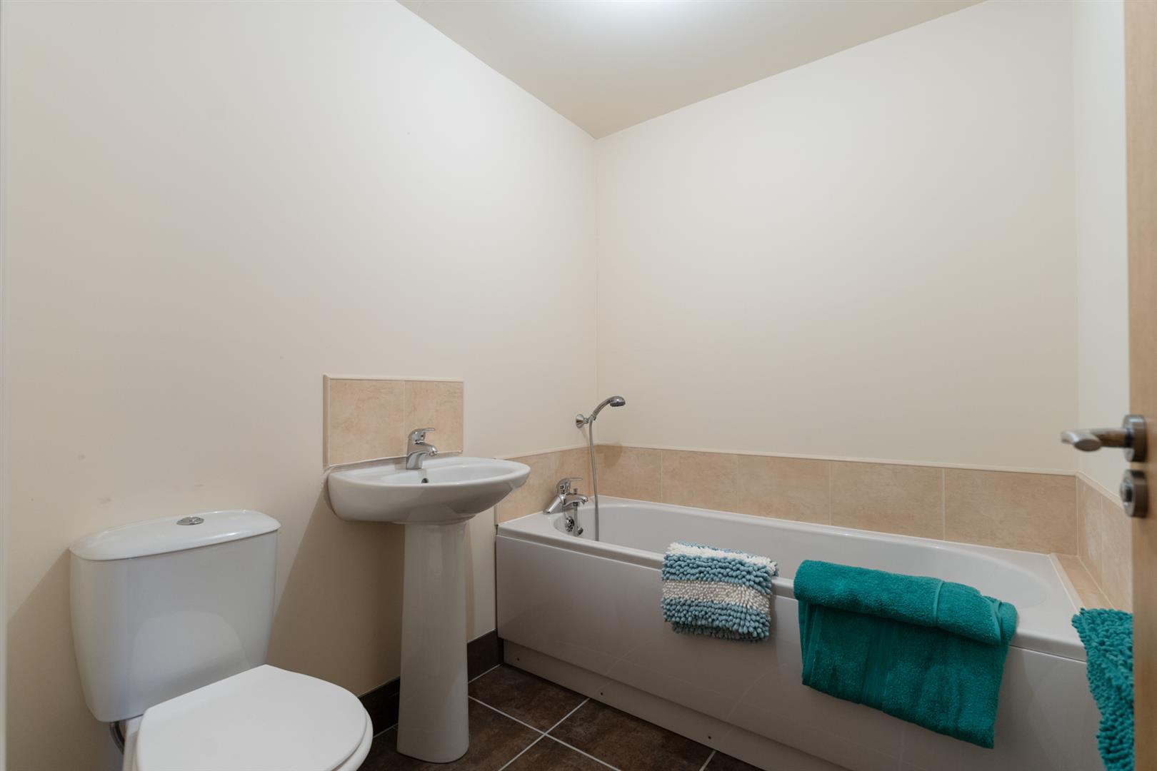 Family bathroom comprising a white suite, along with a downstairs W/C