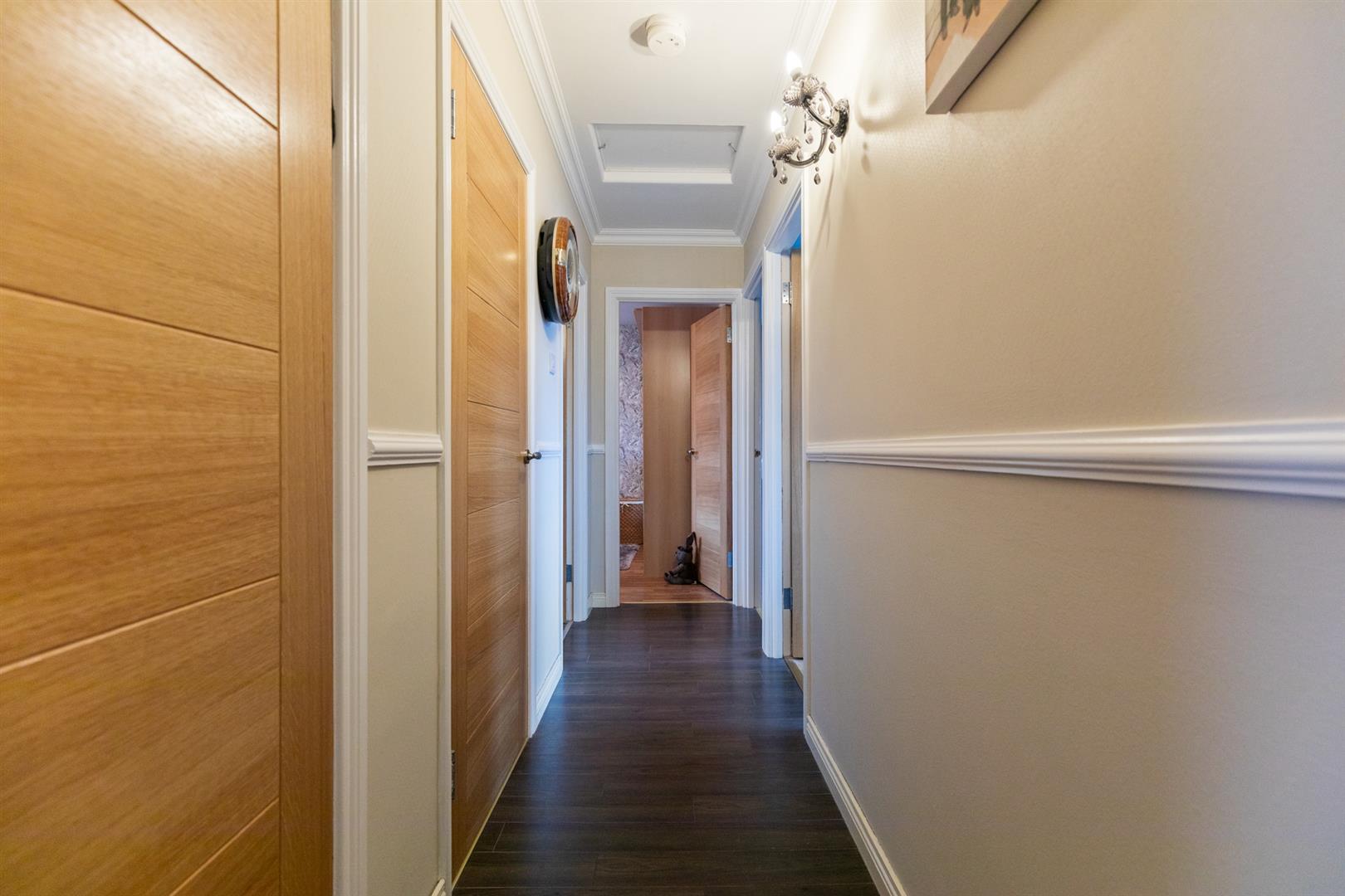 There are three well-proportioned bedrooms, all finished with wood laminate flooring, including two generous doubles. The contemporary bathroom is fitted with a white suite comprising a freestanding bath, walk-in overhead shower, vanity unit, heated towel rail, panelled walls and extractor fan.