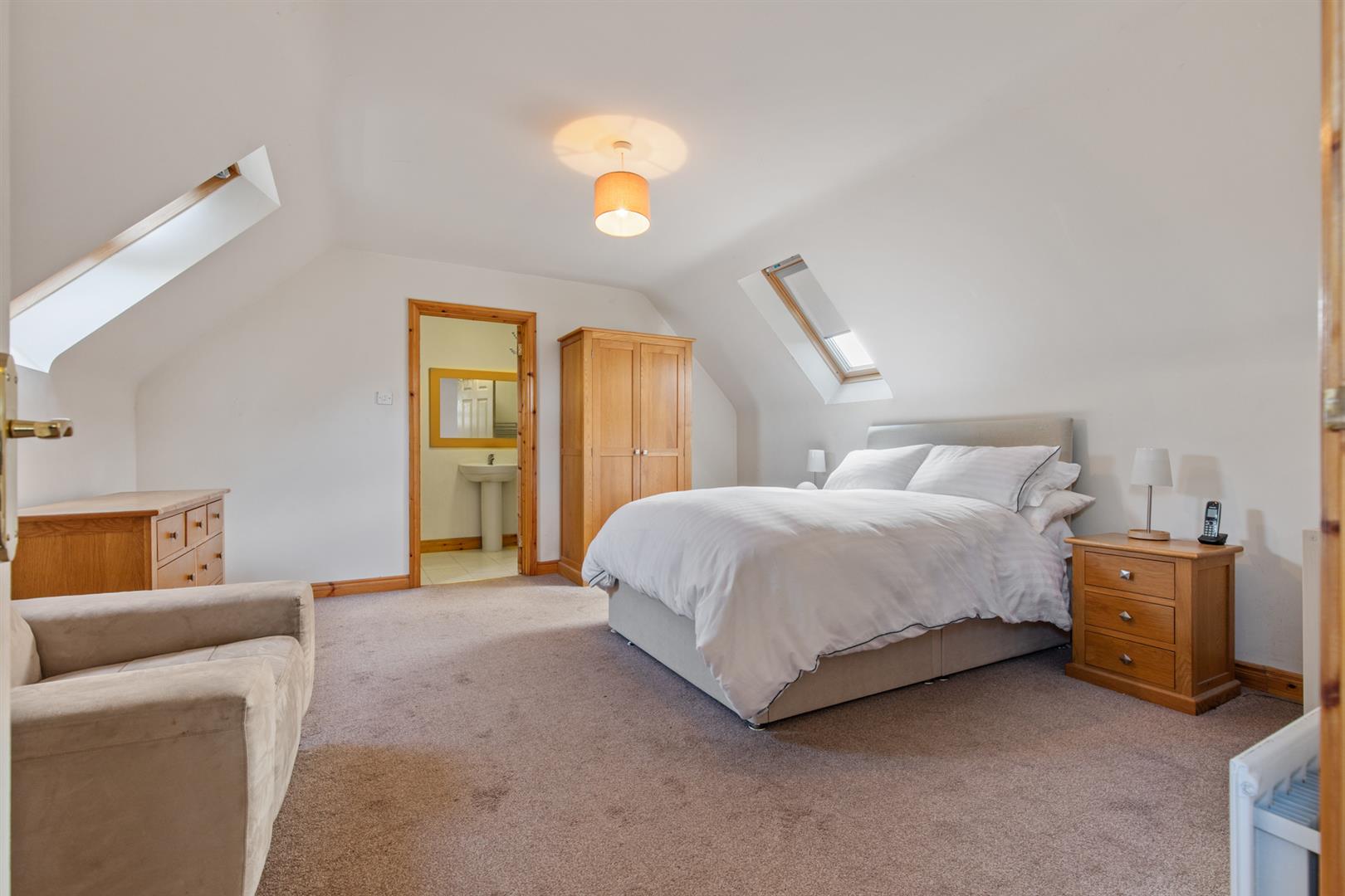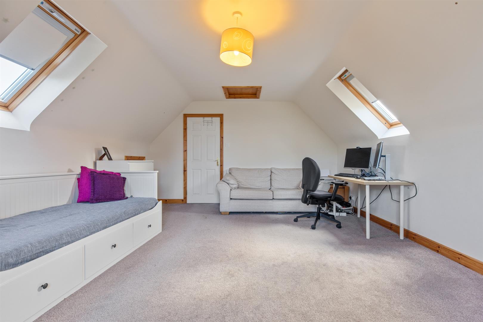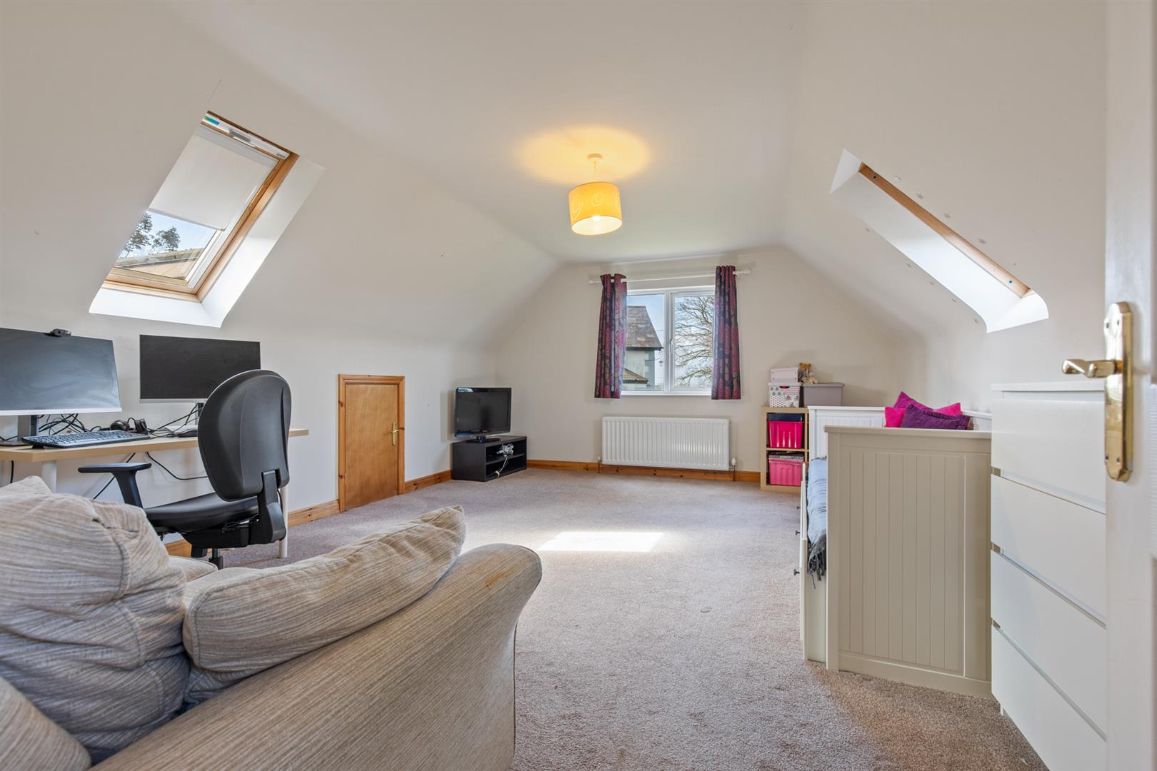 Double bedroom with eaves storage and velux style windows.