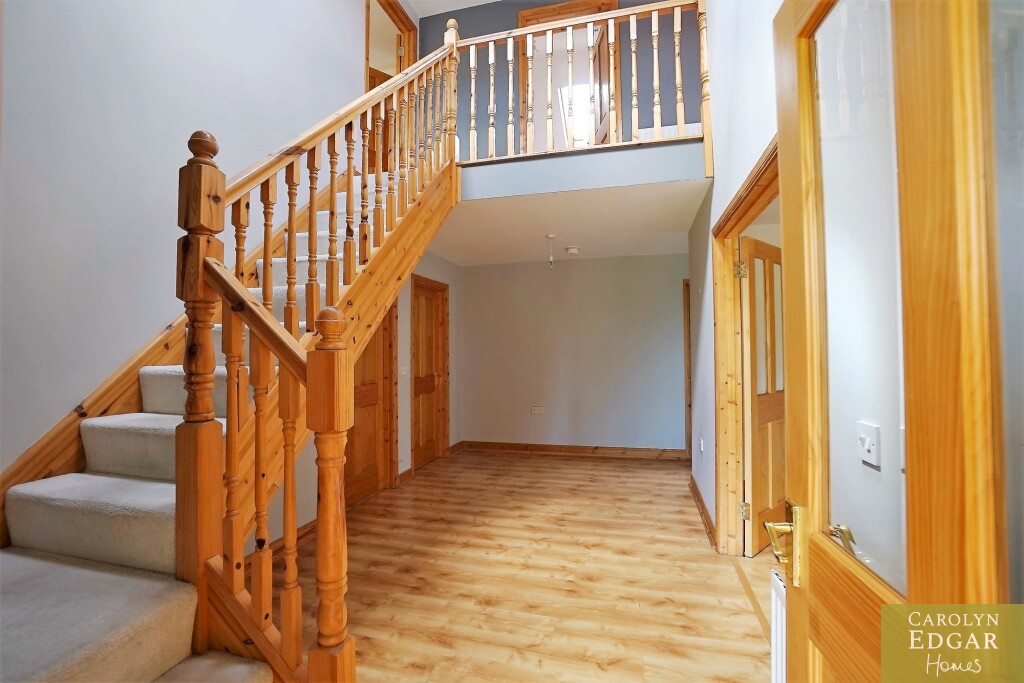 Set down a quiet laneway of the main road surrounded by wonderful countryside views and a wraparound garden this spacious and bright four-bedroom cottage style home is in an idyllic location and offers a much sought-after opportunity to live in a semi-rural picturesque setting. Within minutes to the beautiful shoreline and local amenities of Ballywalter and the bustling market town of Newtownards less than 20 minutes way, this really does present a unique opportunity for those looking for a quieter change of pace and the lifestyle that comes with it. Internally the property comprises of entrance porch, a large welcoming reception hallway with solid oak staircase, spacious lounge with feature brick fireplace and multi fuel stove, 2nd reception/family room leading onto sunroom with French doors out to paved sun terrace with fabulous country views, large fitted kitchen, utility room, double bedroom and bathroom. On the first floor there are a further three double bedrooms, separated by the galleried landing overlooking the reception hallway, the master bedroom has walk in robes and ensuite bathroom. To the front of the property is a large driveway providing ample car parking for several cars, boat or horse boxes, garage and to the rear are extensive gardens laid in lawn with fabulous uninterrupted countryside views.