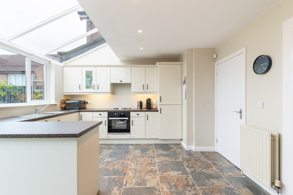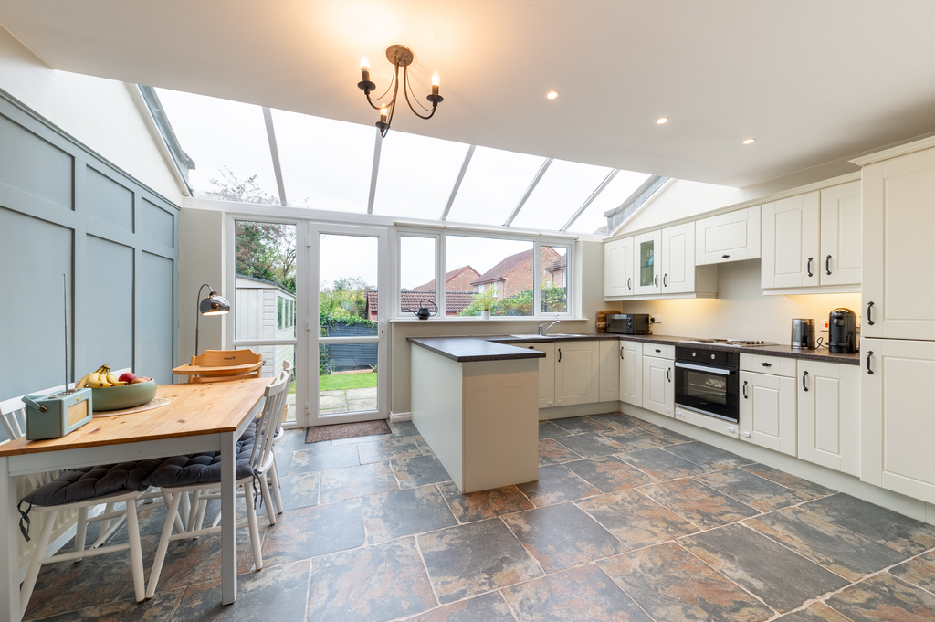 Modern Fitted Open Plan Kitchen and Dining Area with Vaulted Glazed Ceiling