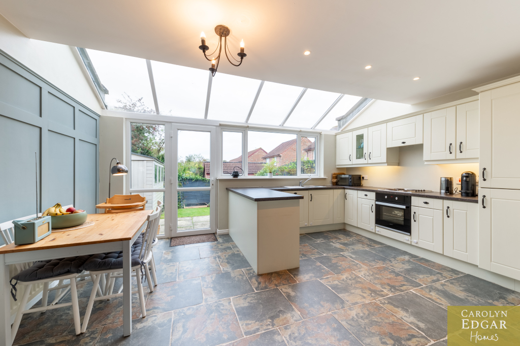 Modern Fitted Open Plan Kitchen and Dining Area with Vaulted Glazed Ceiling