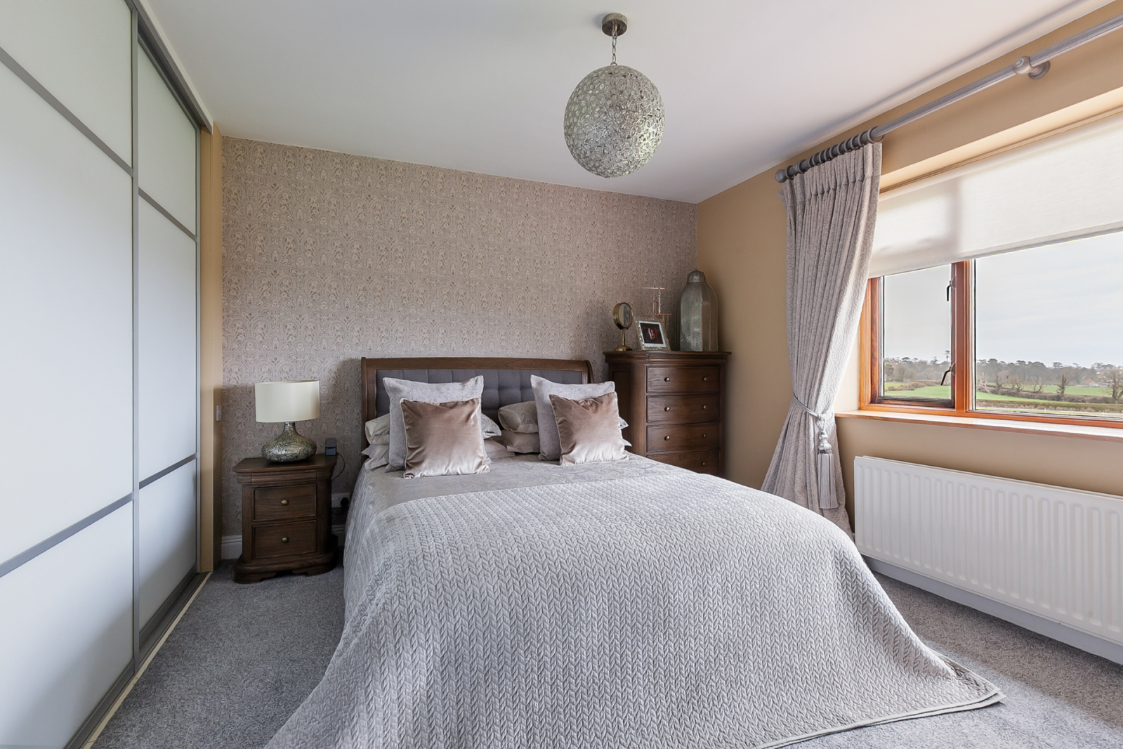 Excellent range of modern full width Sliderobes, countryside views.