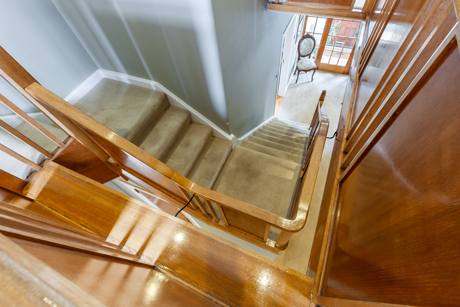 Staircase with original oak hand rails and balustrades to: