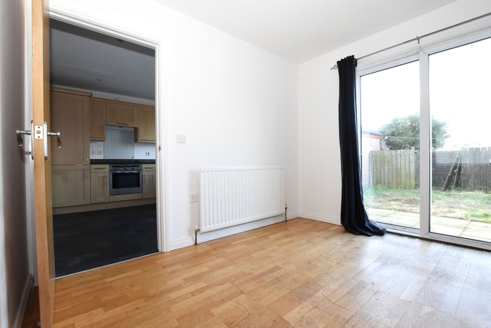 Oak effect flooring, single panel radiator, double glazed patio doors.