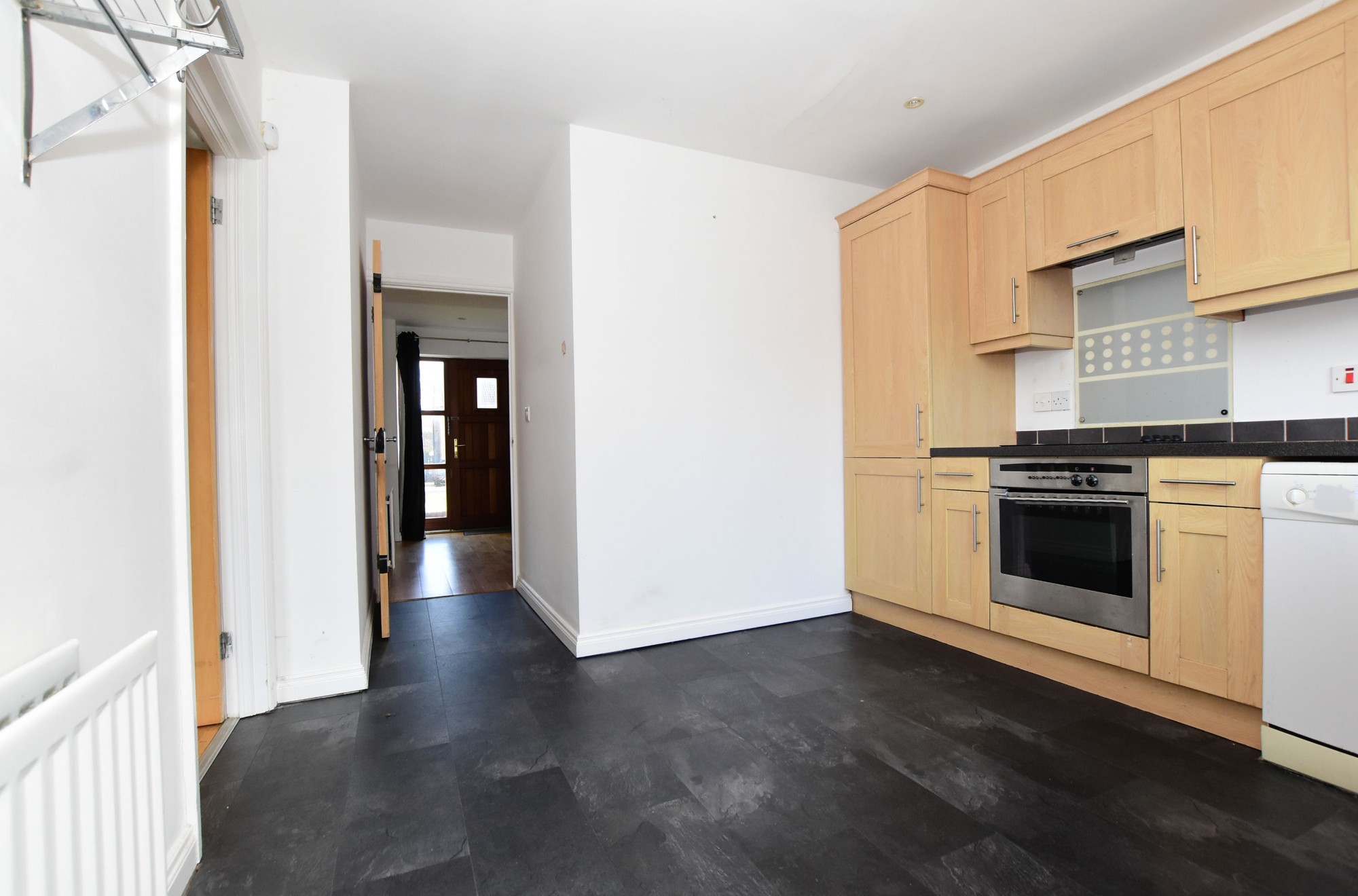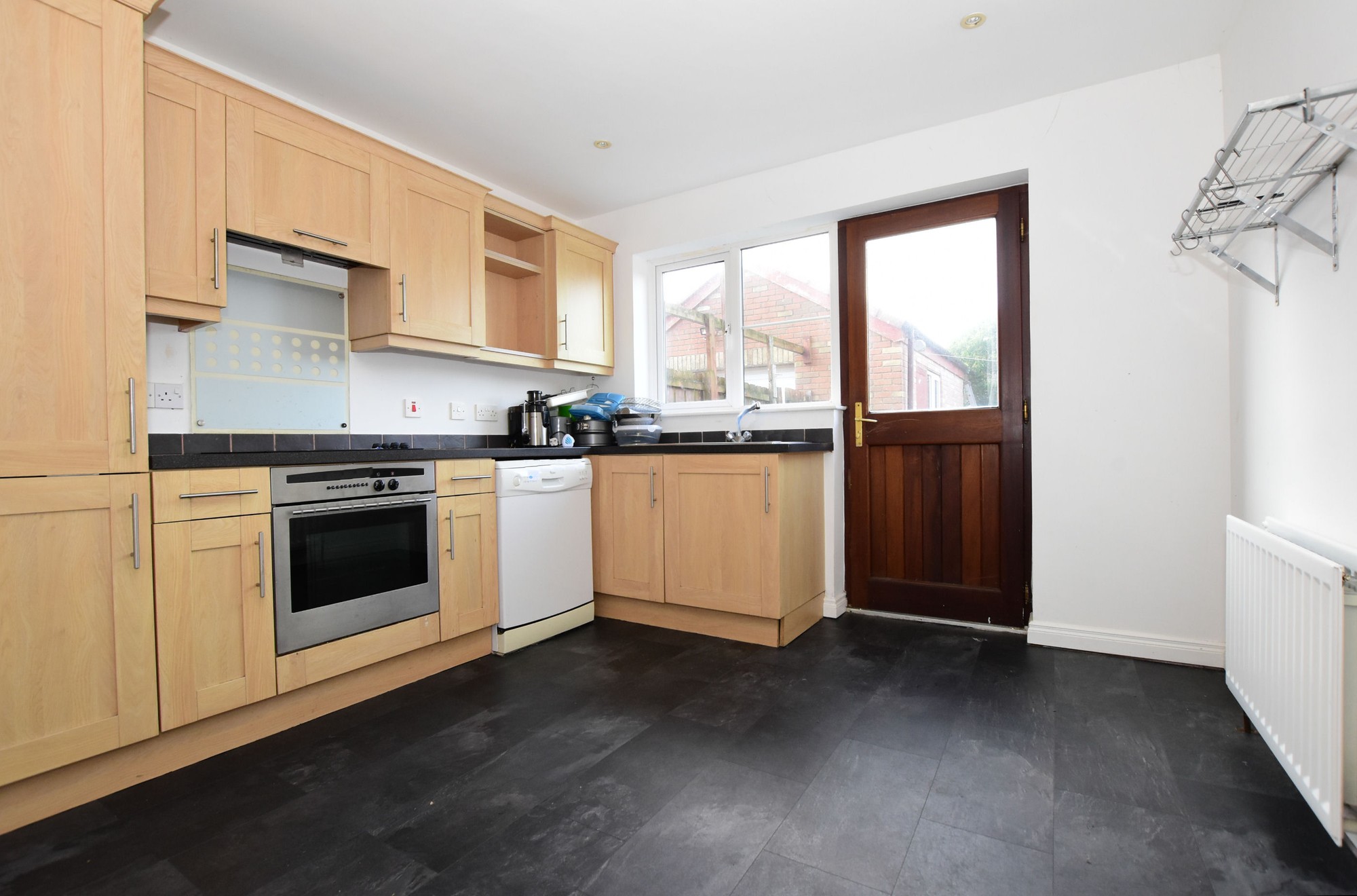 + door recess. A range of high and low level Ash effect units with round edge work tops, 4 ring electric hob with Low level oven/grill. Single drainer stainless steel sink unit with mixer tap. Plumbed for dishwasher, LED lighting, double panel radiator, tile effect flooring. Part hardwood/part double glazed door.