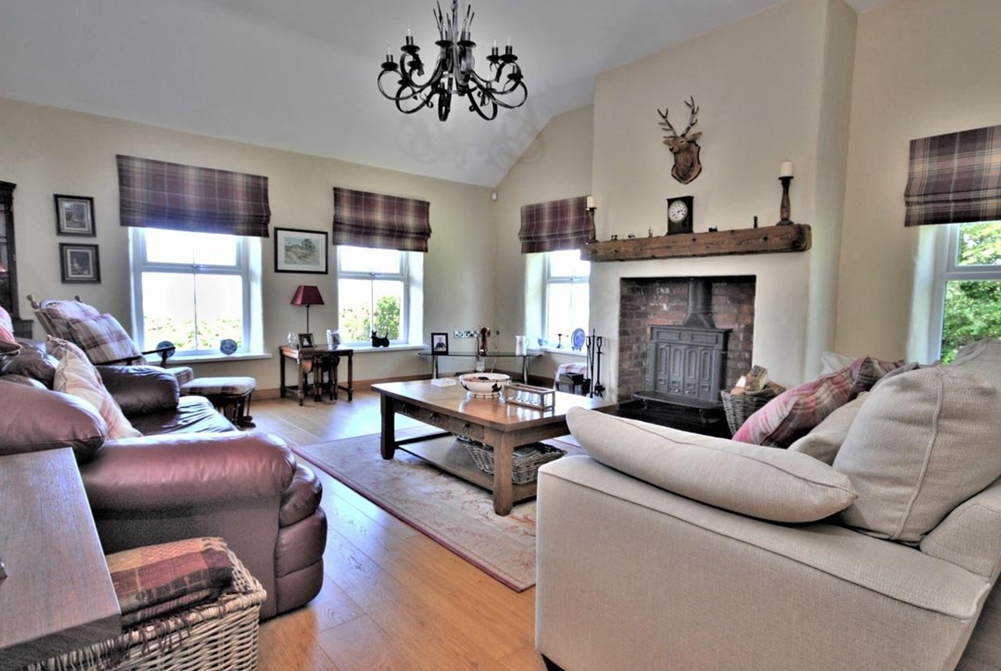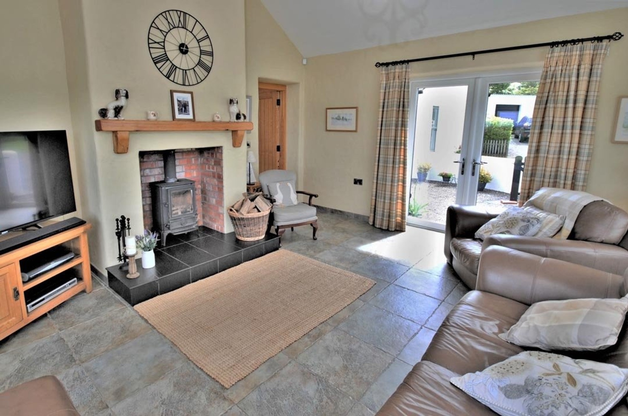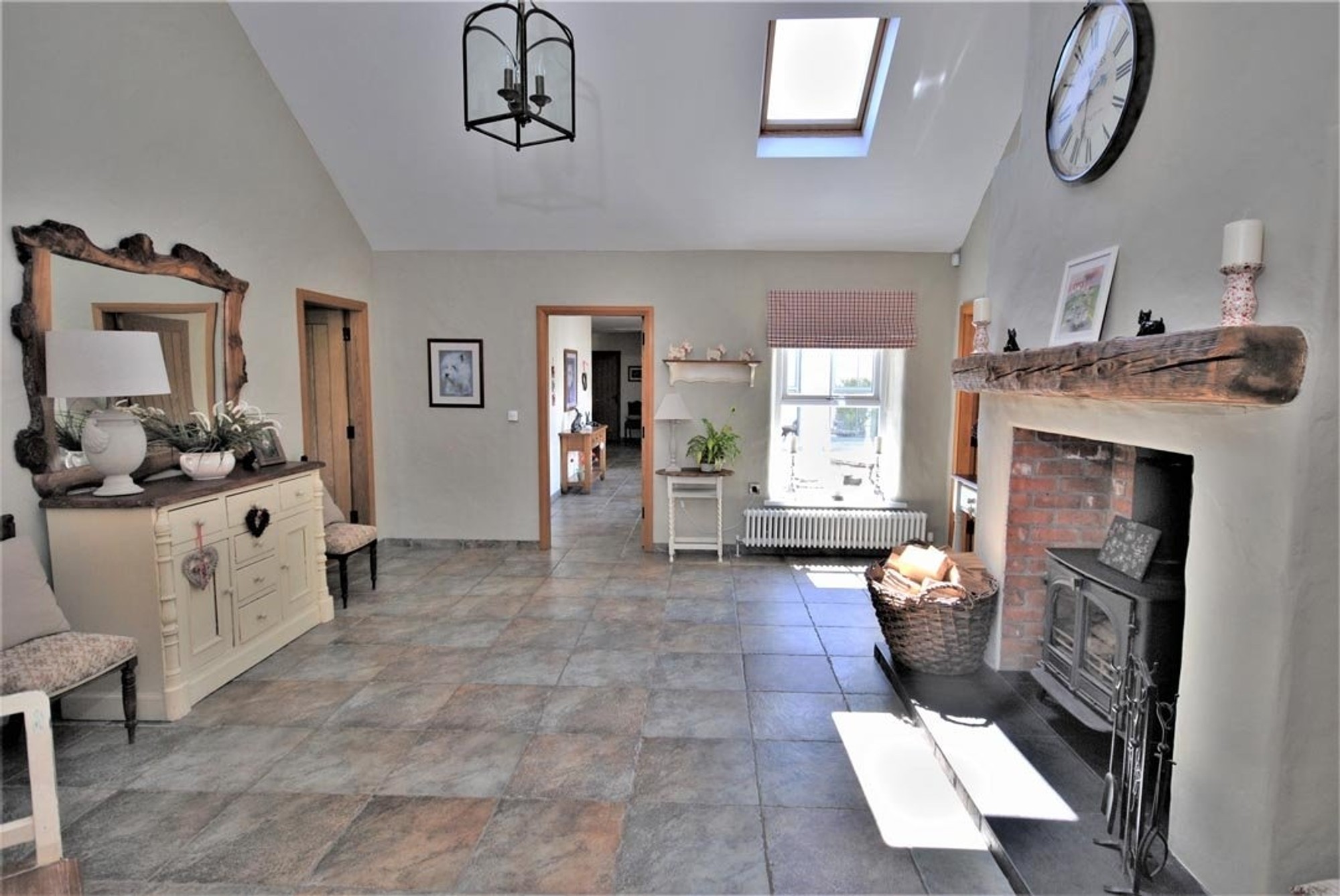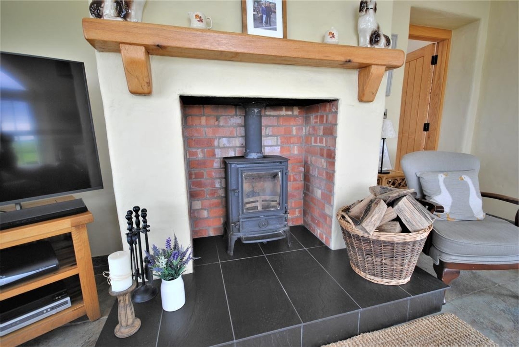 The rooms are all a great size and the cottage character of the house is evident throughout with open brick faced chimney breasts with Stovax cast iron fires and timber mantles in three rooms, traditional textured plasterwork with tapered reveals and extra thick walls and vaulted ceilings.