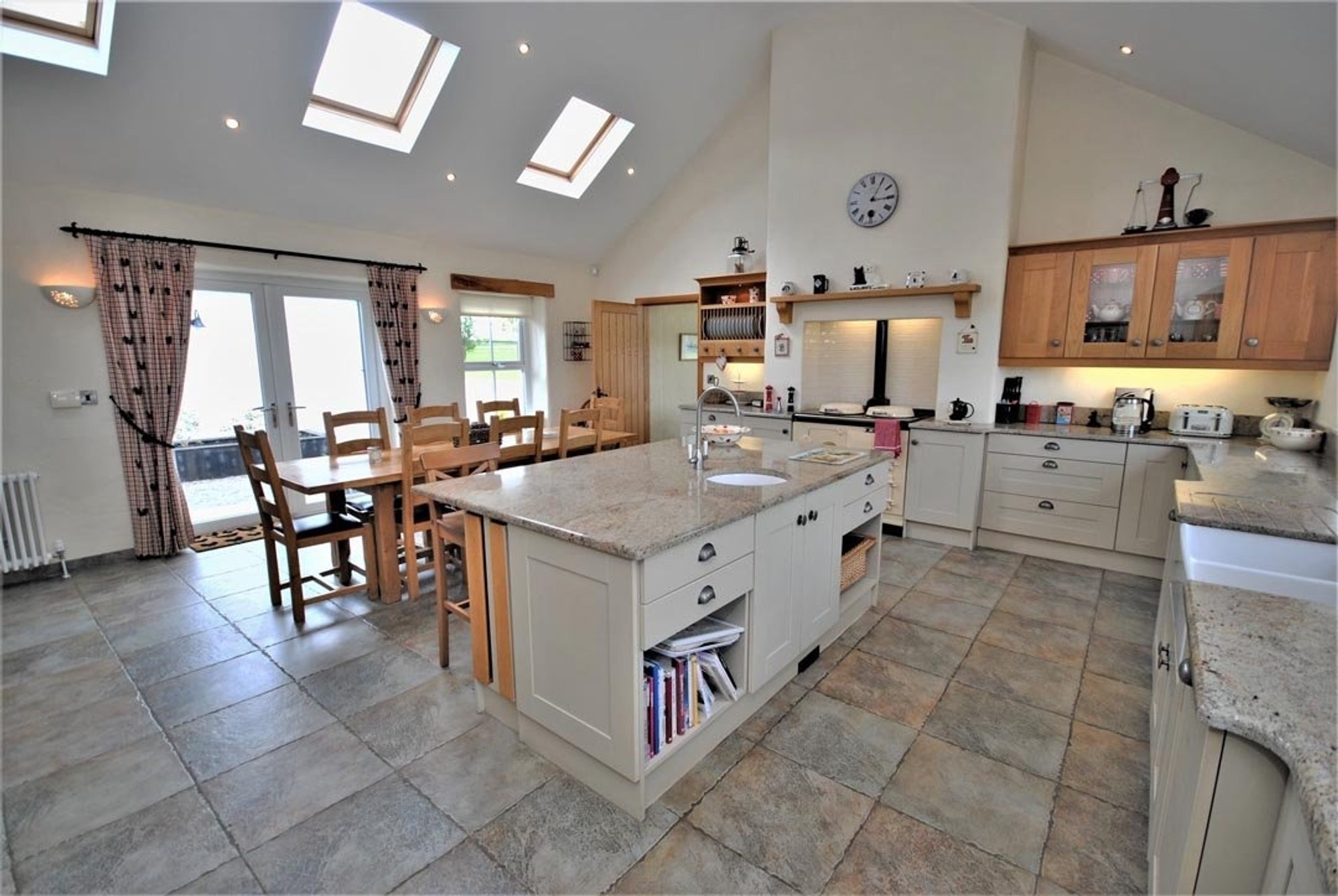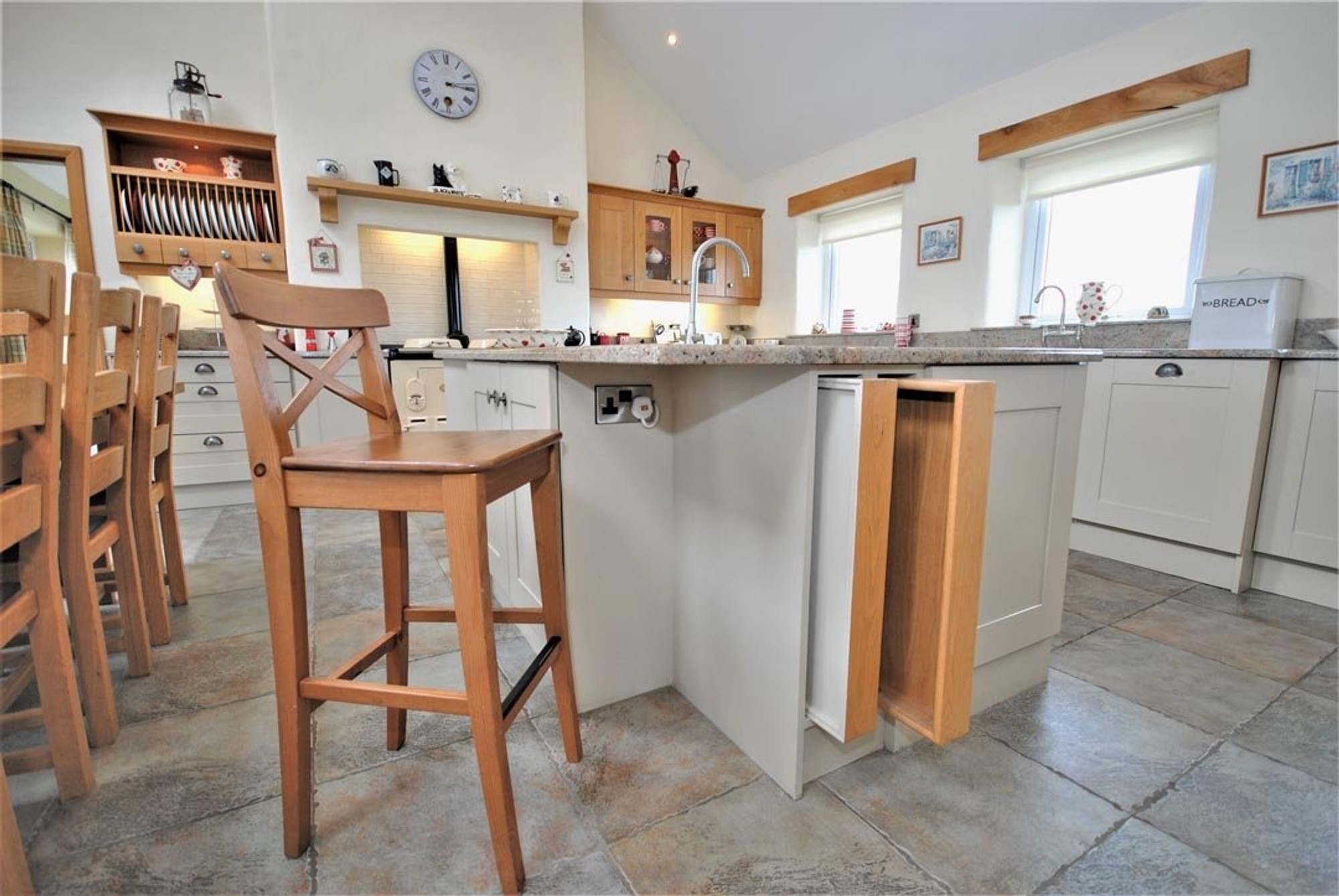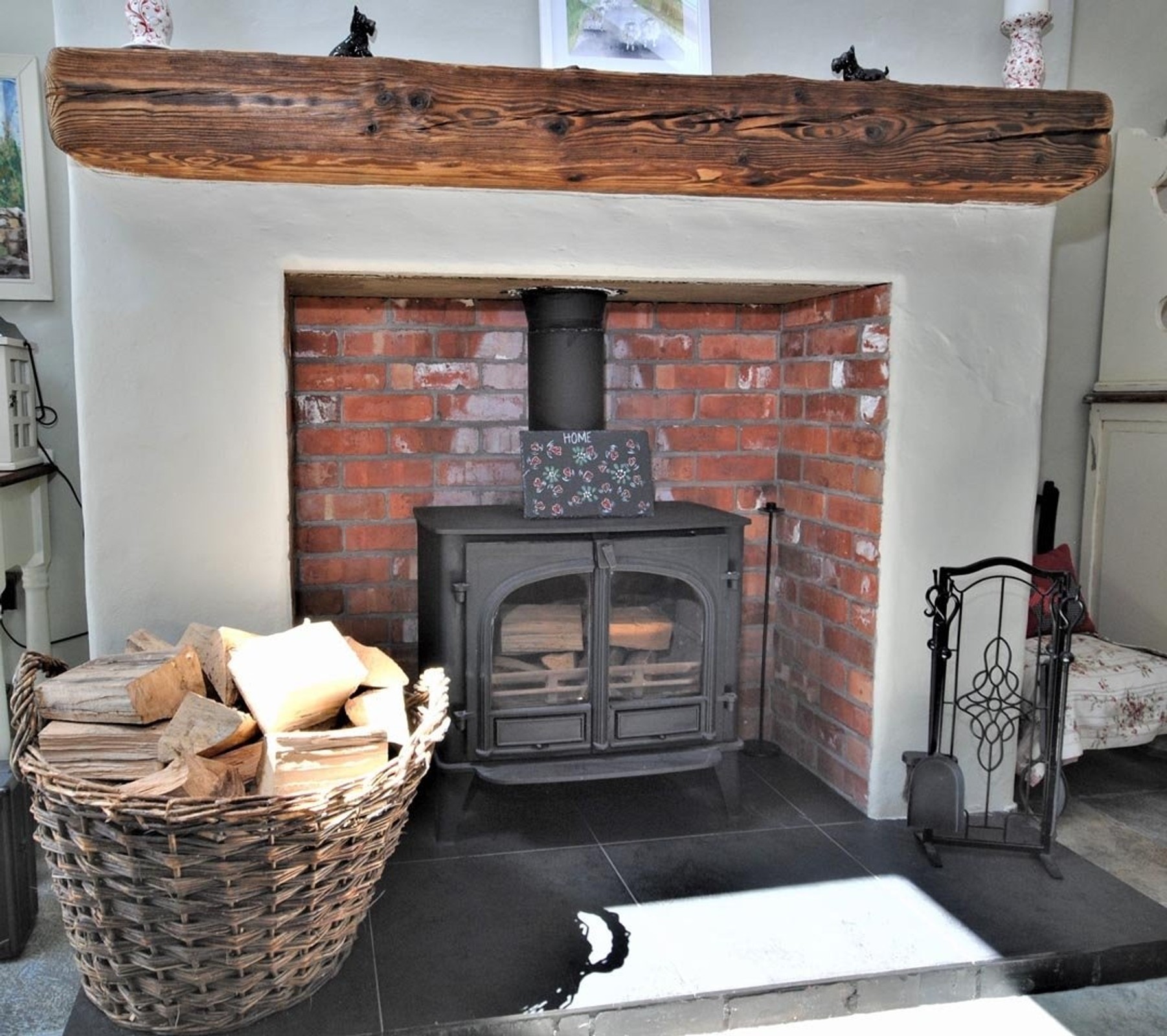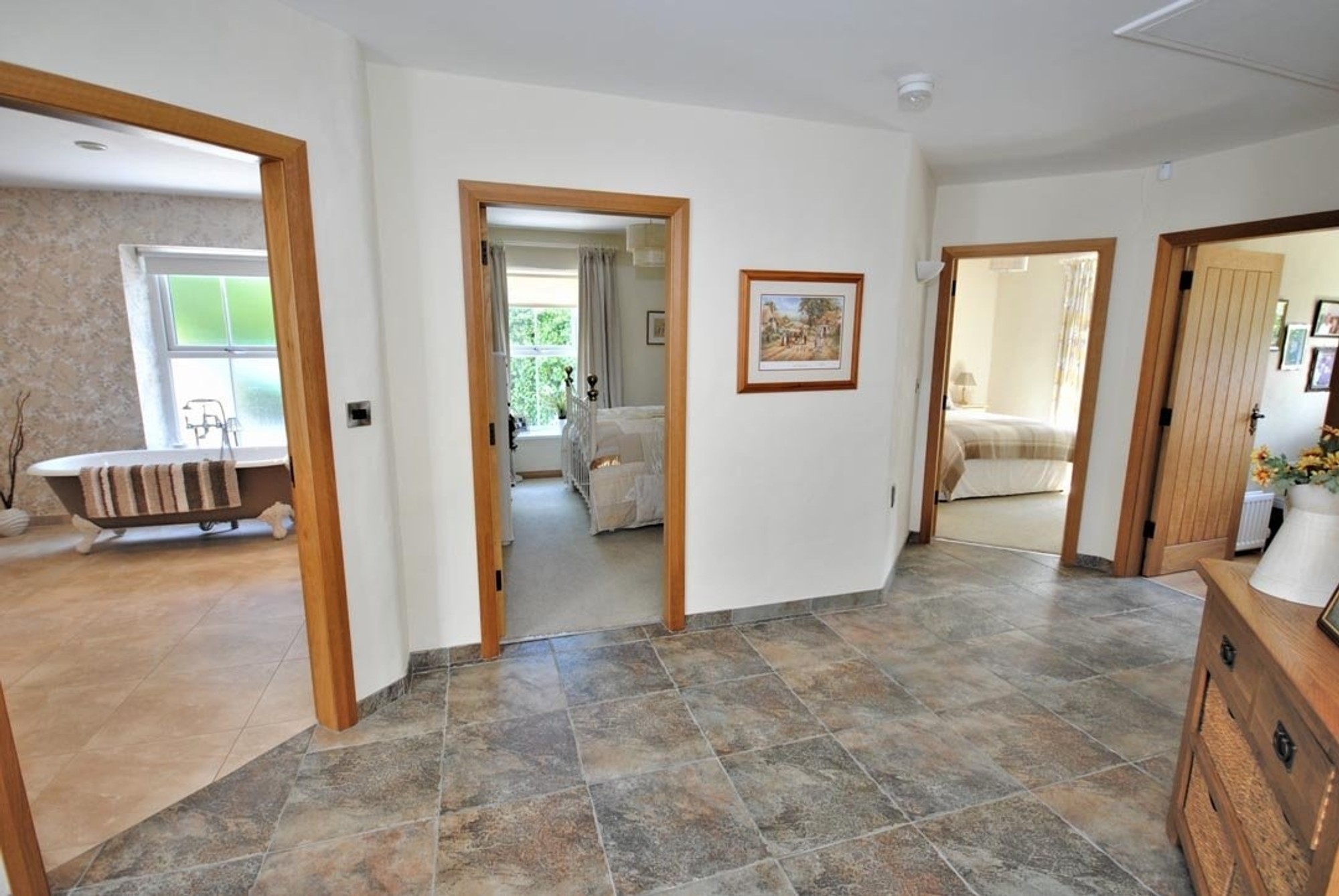 The rooms are all a great size and the cottage character of the house is evident throughout with open brick faced chimney breasts with Stovax cast iron fires and timber mantles in three rooms, traditional textured plasterwork with tapered reveals and extra thick walls and vaulted ceilings.