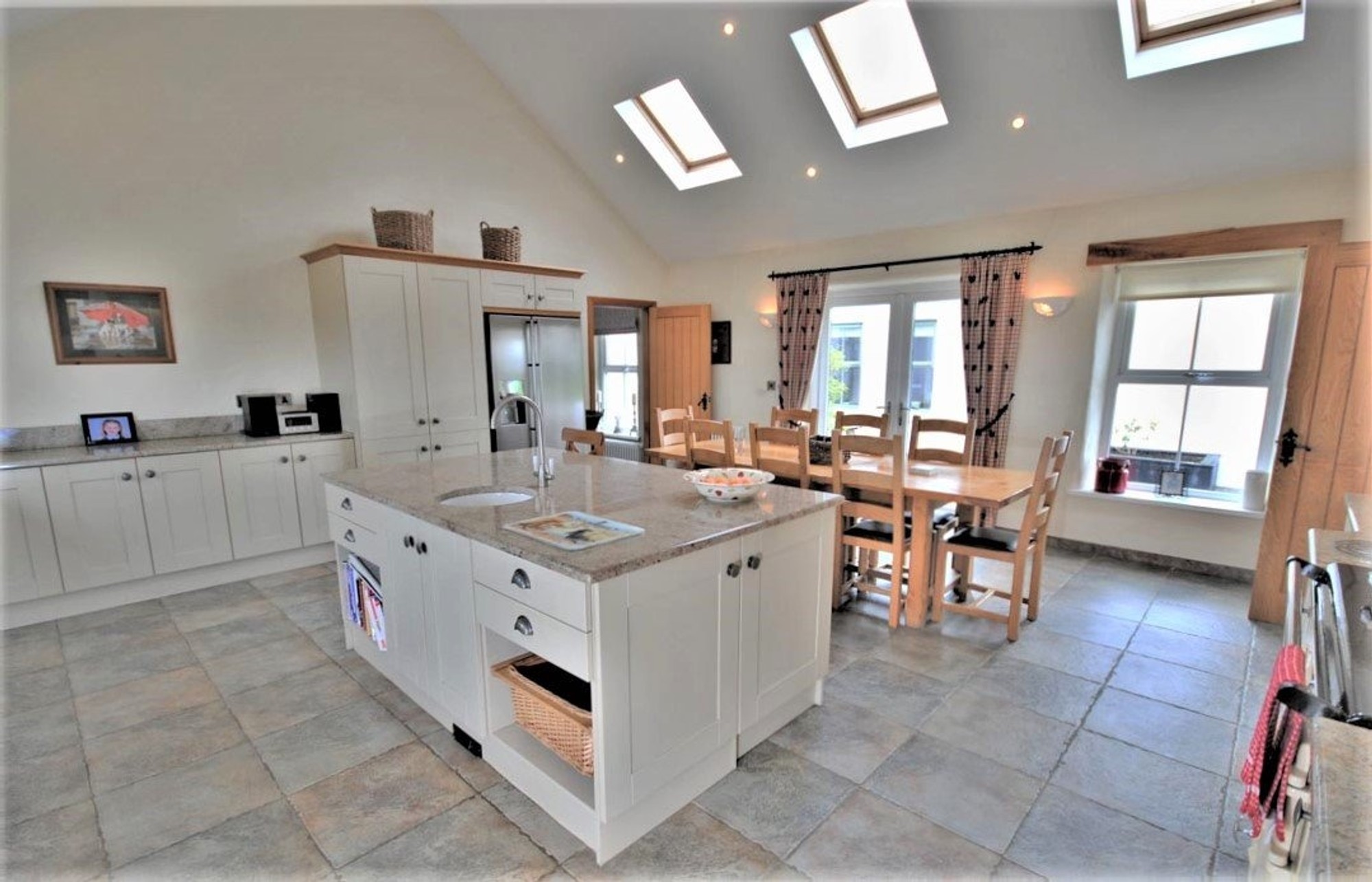 Built around 10 years ago, the design has cleverly achieved the cottage apearance by dividing the house into two smaller sections, the living accommodation to the front and the bedrooms off a spacious hall to the rear. The overall size is an impressive 2700 square feet.