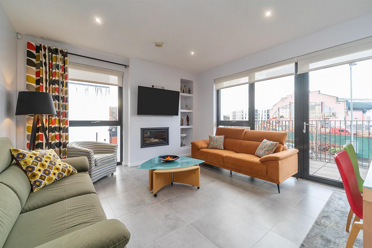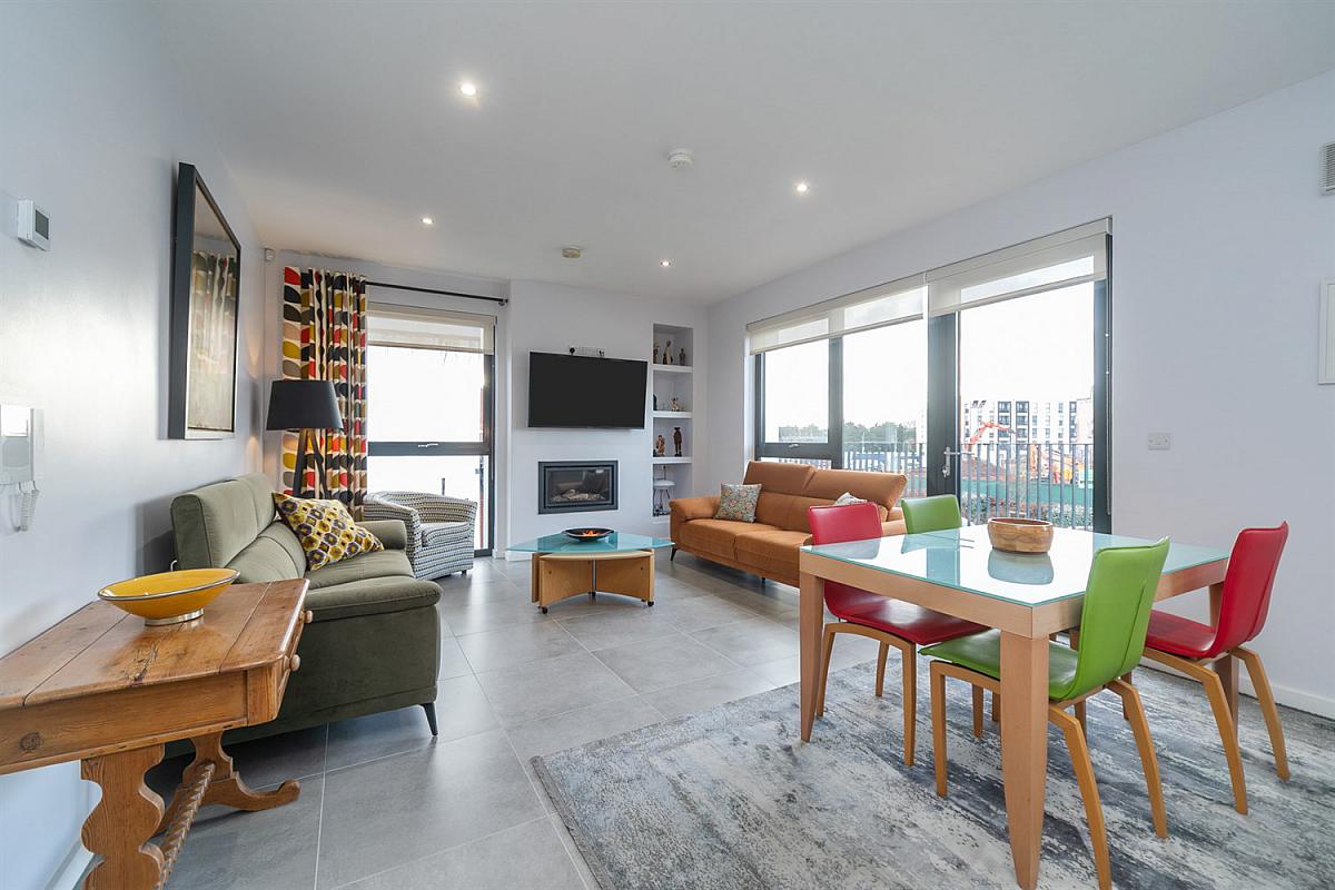 This stunning first floor apartment comprises lounge and casual dining area, open plan to a contemporary fitted kitchen with integrated appliances and access to West facing balcony that maximises natural light to the apartment. There are two generous bedrooms, master with luxury ensuite shower room, separate contemporary shower room, and fitted utility room.