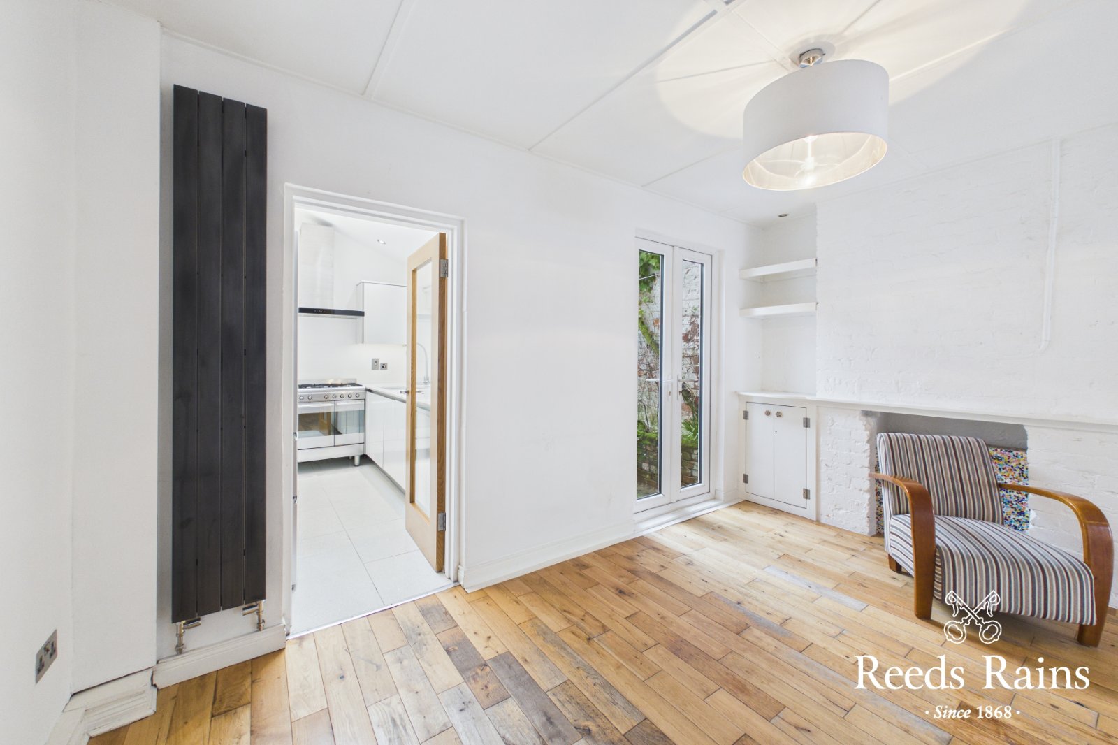 The property has been beautifully refurbished throughout with the ground floor comprising a bright and spacious living room with hardwood flooring, and a stunning kitchen with Quartz worktops, integrated appliances and skylight. The first floor offers a beautiful bathroom suite with exposed brick work and two excellent double bedrooms.