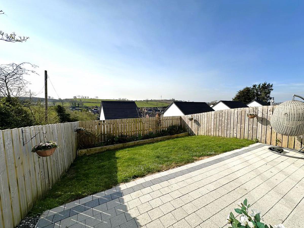 Neat front lawn with double width tarmac driveway. Fully enclosed private south facing rear garden in lawn with brick paved patio area enjoying views to open countryside beyond, outside lighting and water tap.