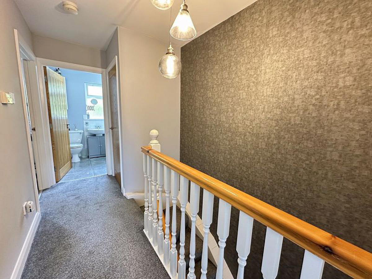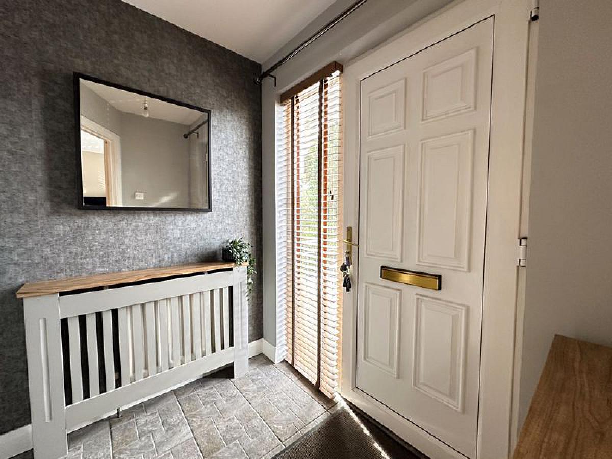PVC front door with double glazed side screen to tiled entrance hall, telephone point.