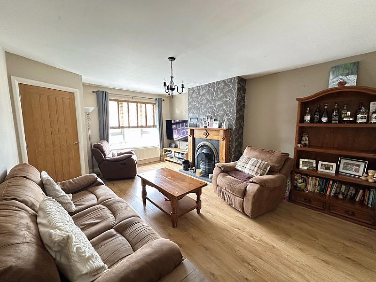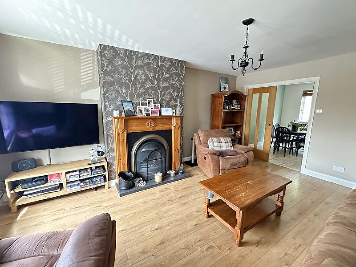 Attractive cast iron fireplace with tiled hearth and feature wood surround, TV point, fibre broadband connection, understairs storage cupboard, double radiator. Glazed double doors to