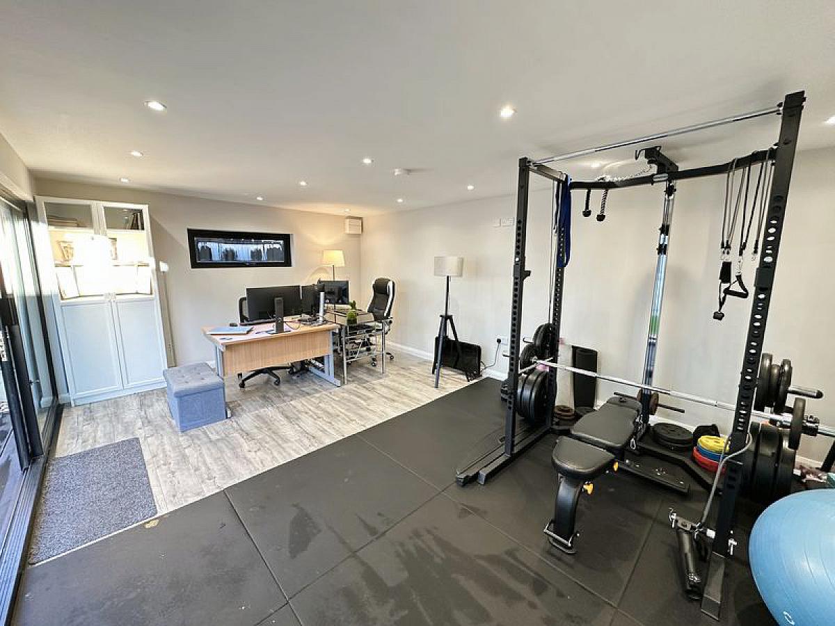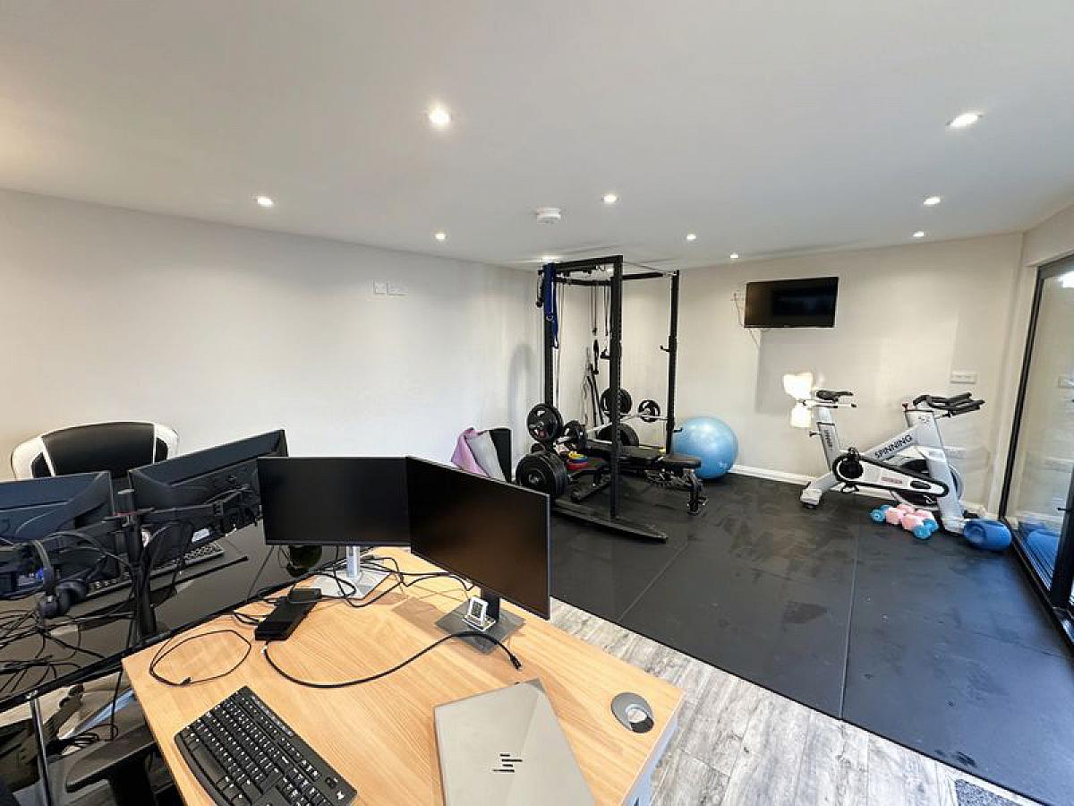 Occupying a desirable cul-de-sac position, the property enjoys a pleasant and private rear garden, further enhanced by a superb high-specification home office/gym — ideal for remote working or fitness use.