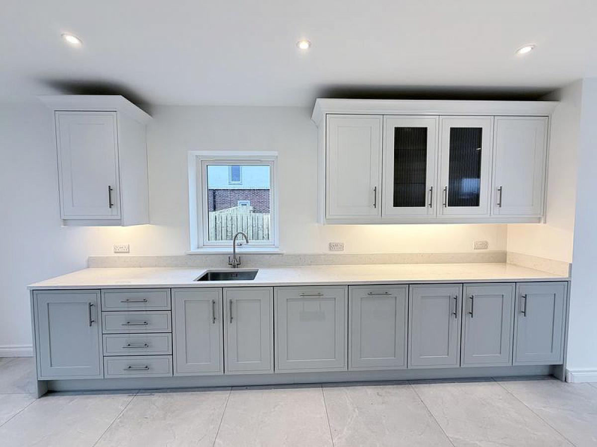 This exceptional high-spec new build offers a true turnkey finish, thoughtfully designed to meet modern living standards while delivering comfort, efficiency, and style throughout. The property is completed to an impressive specification, including a bespoke fitted kitchen with integrated appliances, luxury sanitary ware, high-quality tiling, carpets, full painting and decoration, and solar panels to enhance energy efficiency.
