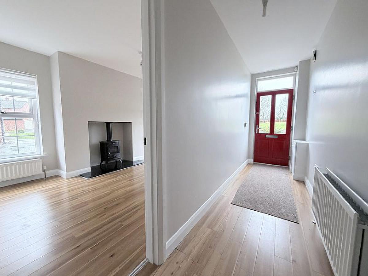 Hardwood double glazed front door to spacious hall with laminate wooden floor, telephone point, alarm control panel, double radiator.