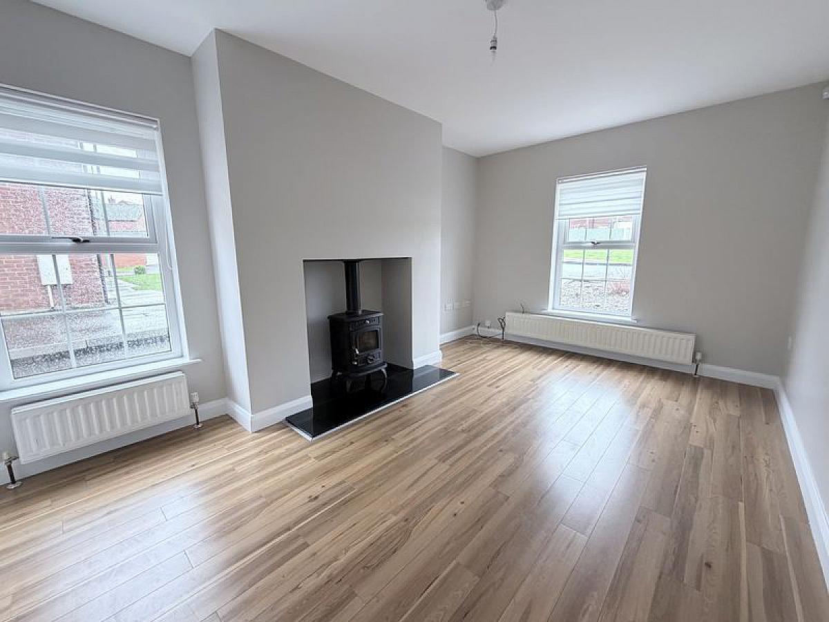 Feature cast iron stove with polished granite hearth, TV point, telephone point, laminate wooden floor, 2 double radiators.