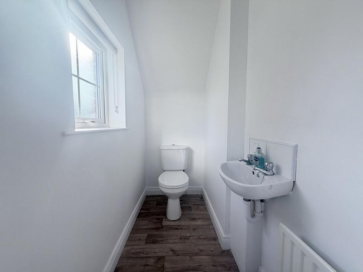 The accommodation comprises a bright lounge, kitchen/dining area, and WC on the ground floor, with three well-proportioned bedrooms and a family bathroom on the first floor.