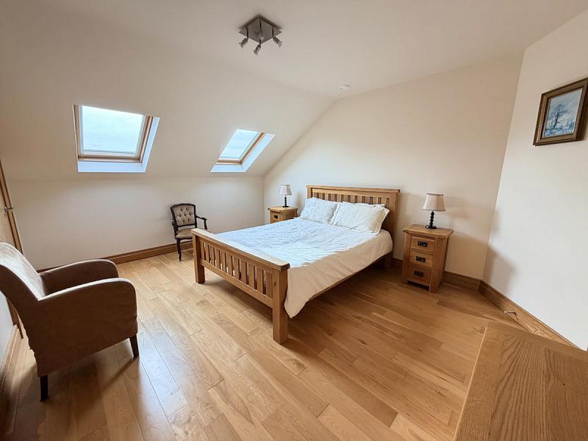 Built-in robe, oak wooden floor, twin double glazed Velux roof lights.