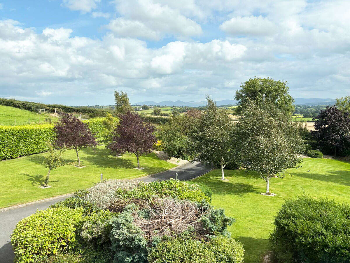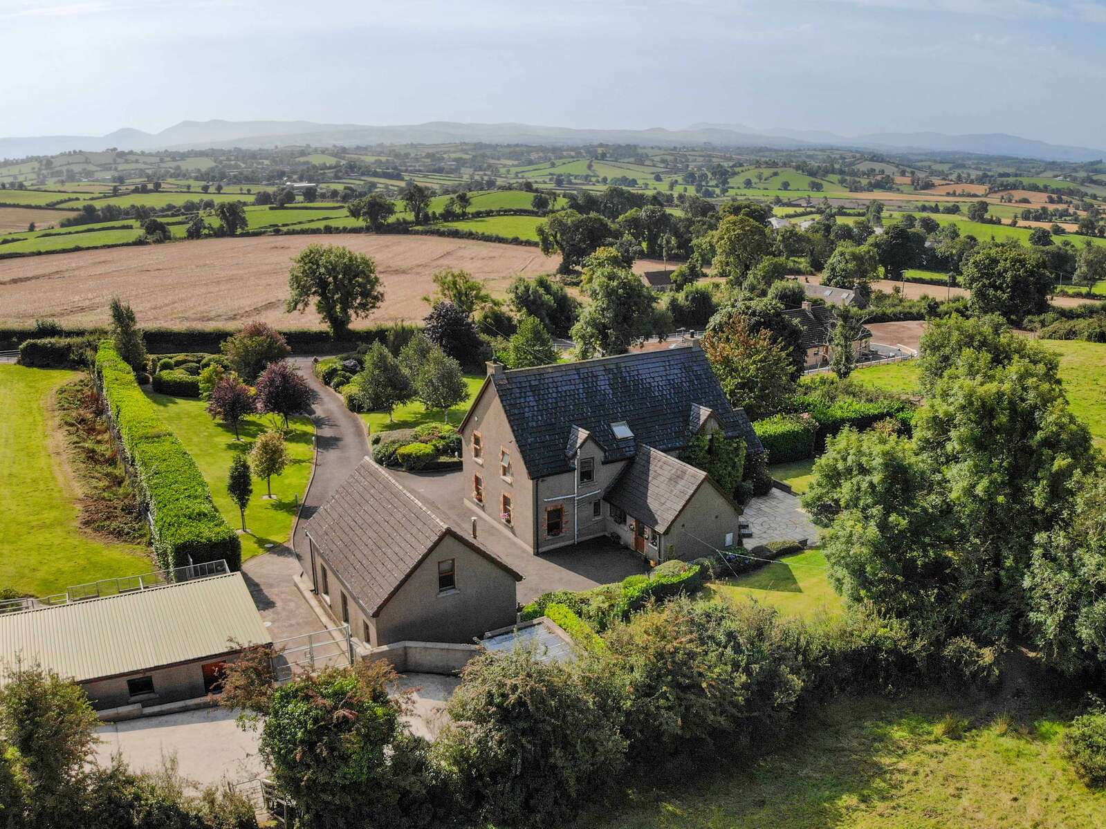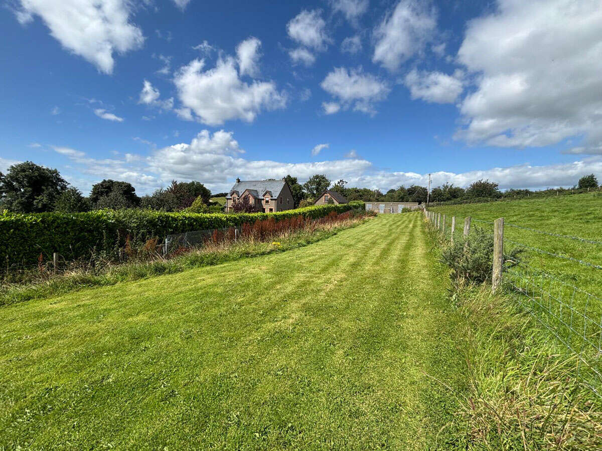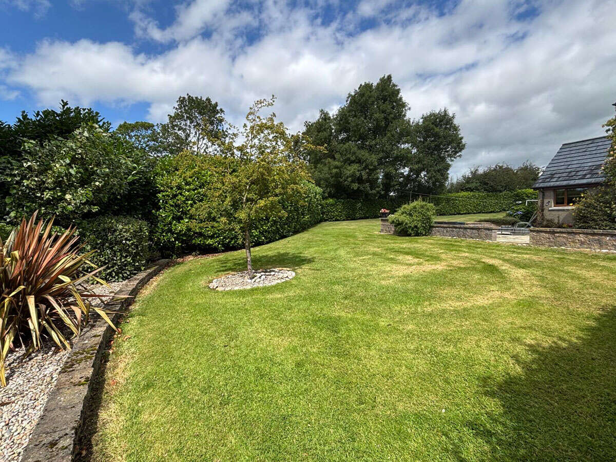 Double cast iron gates leads from Glaskerbeg Road onto tarmac driveway leading to front and side of property. Detached double garage with office/games room above. Stables and paddock.