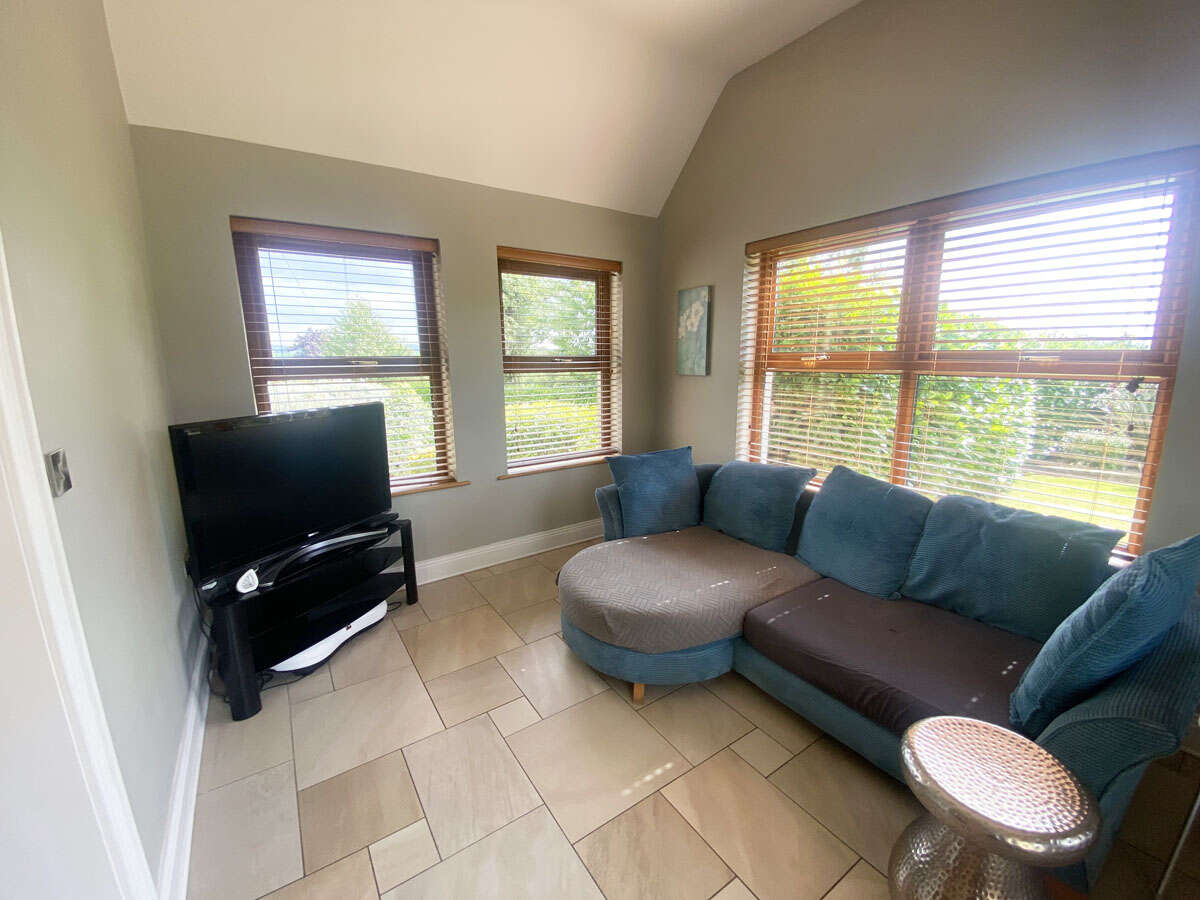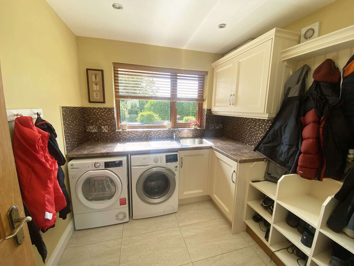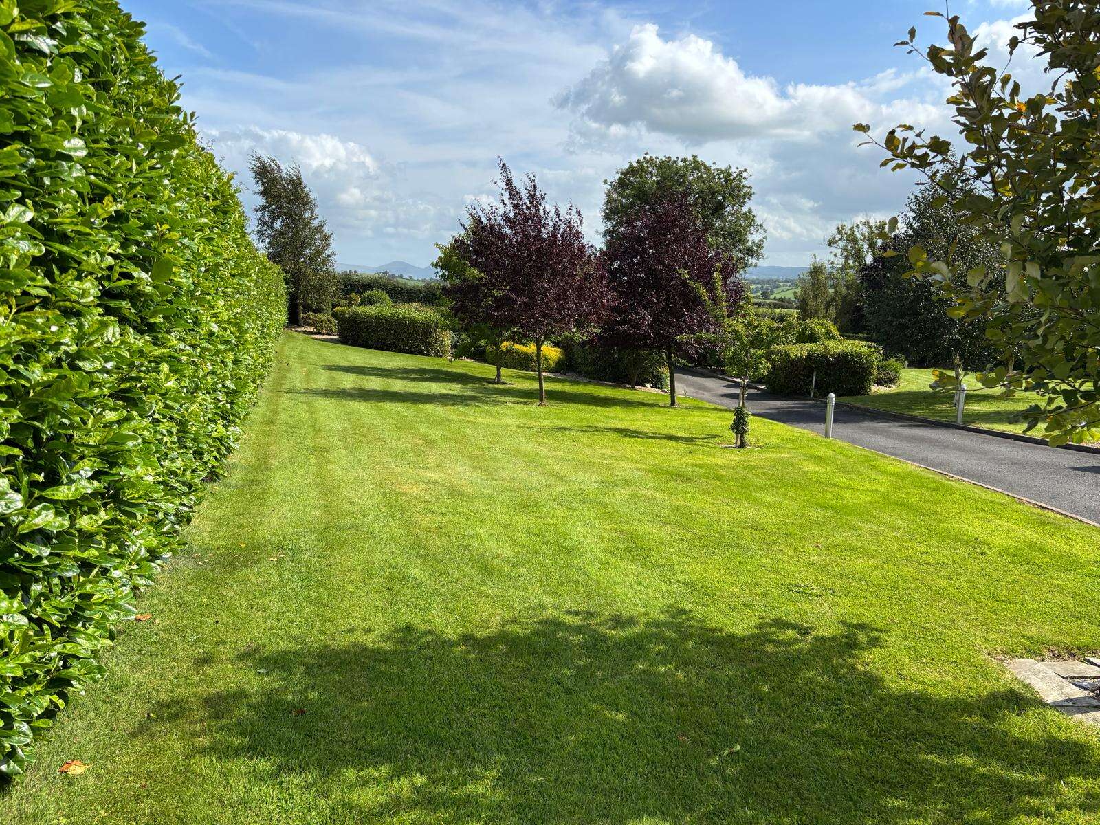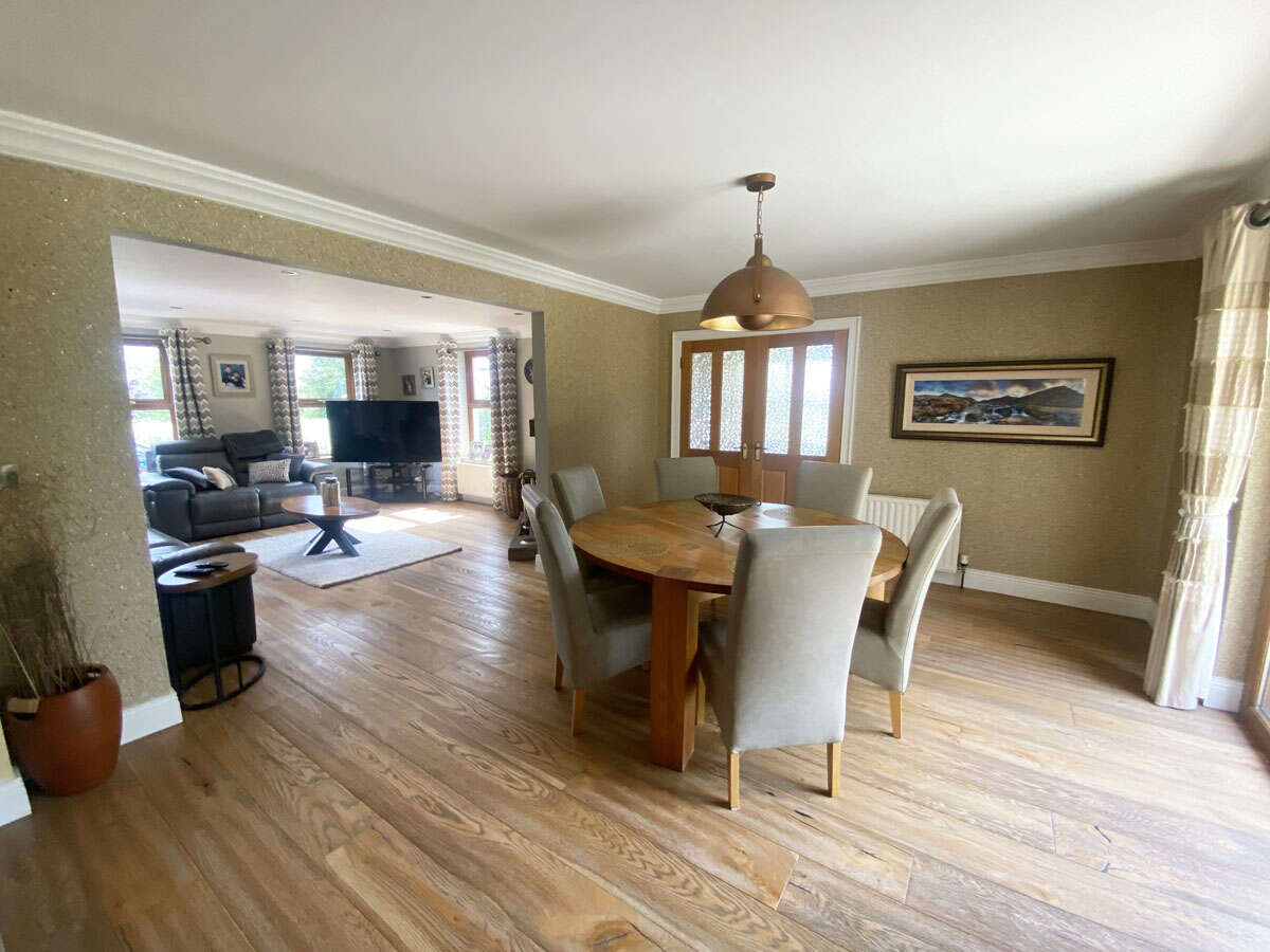 Double cast iron gates leads from Glaskerbeg Road onto tarmac driveway leading to front and side of property. Detached double garage with office/games room above. Stables and paddock.