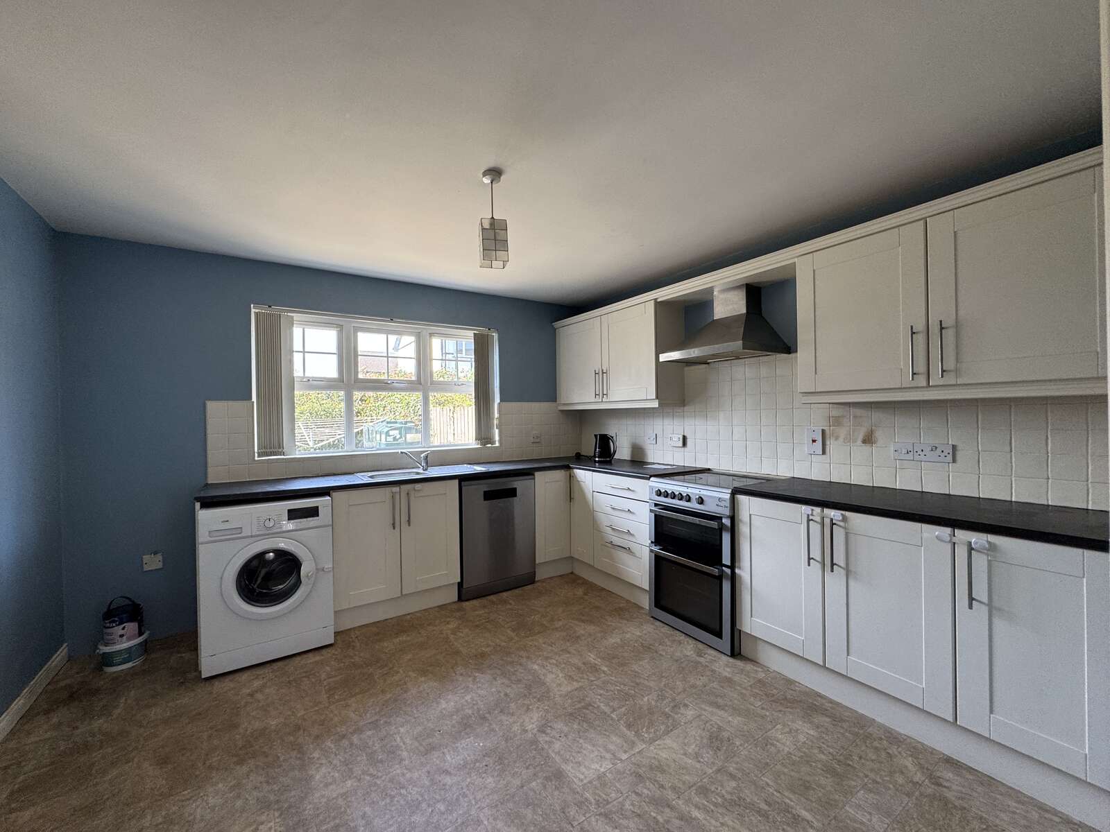Kitchen/Dining: 11’8 x 11’4 (3.56m x 3.45m) Range of high and low level shaker units, single drainer stainless steel sink unit. Plumbed for washing machine and space for dishwasher. Vinyl flooring and part tiled walls. Space for cooker and fridge freezer.