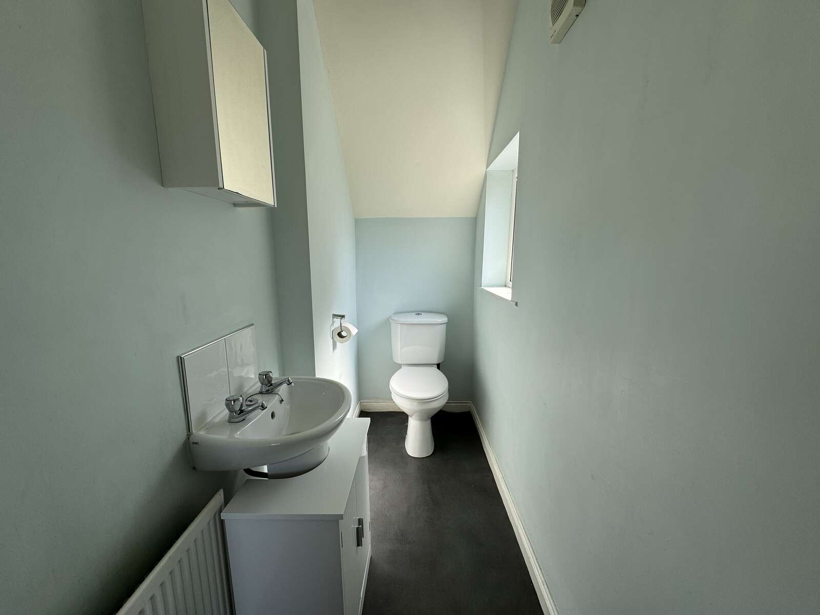 Downstairs WC: 7’5 x 3’3 (2.26m x 1.02m) White WC and wash hand basin. Vinyl floor.