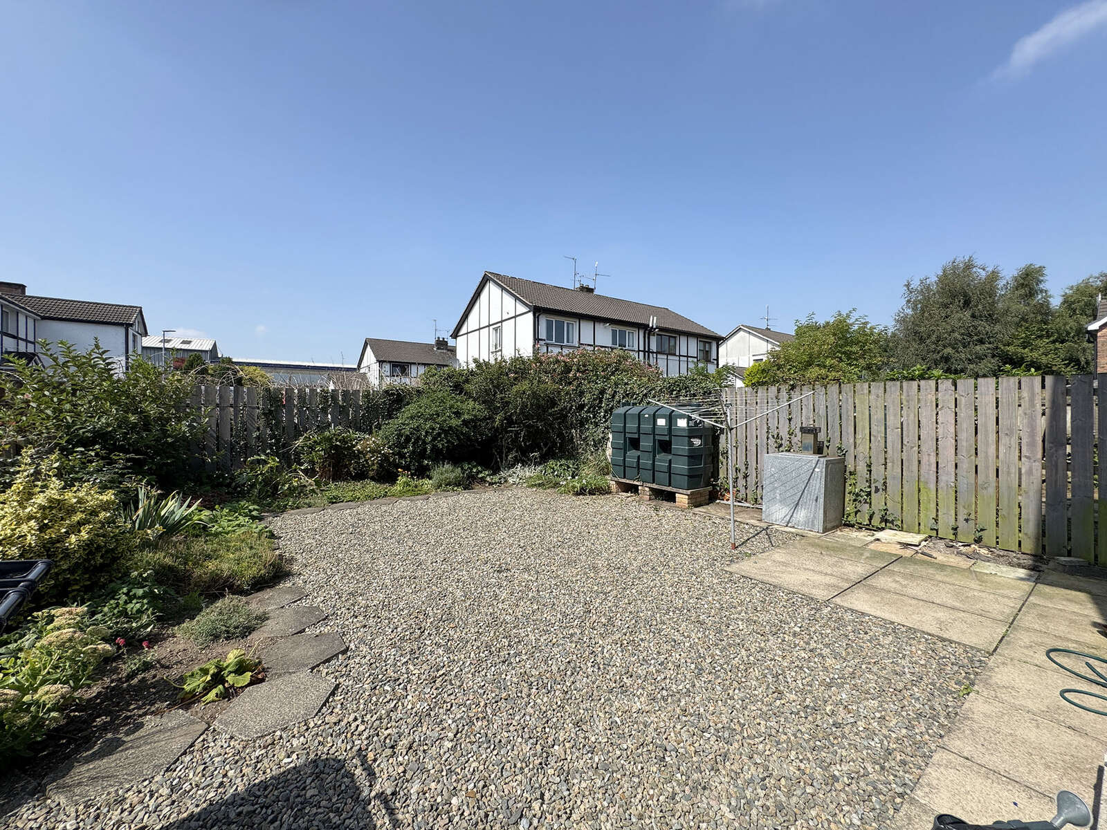 property is a garden laid in stones with stoned driveway leading to side to accommodate 2 cars. The rear is fully enclosed with neat stoned garden and patio area. Outside light and water tap.