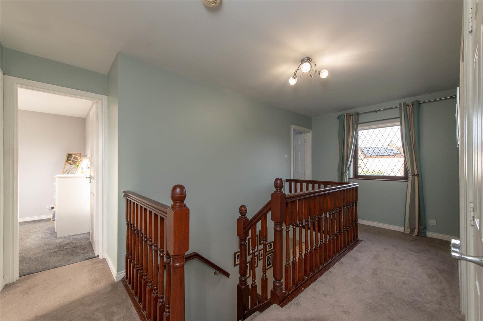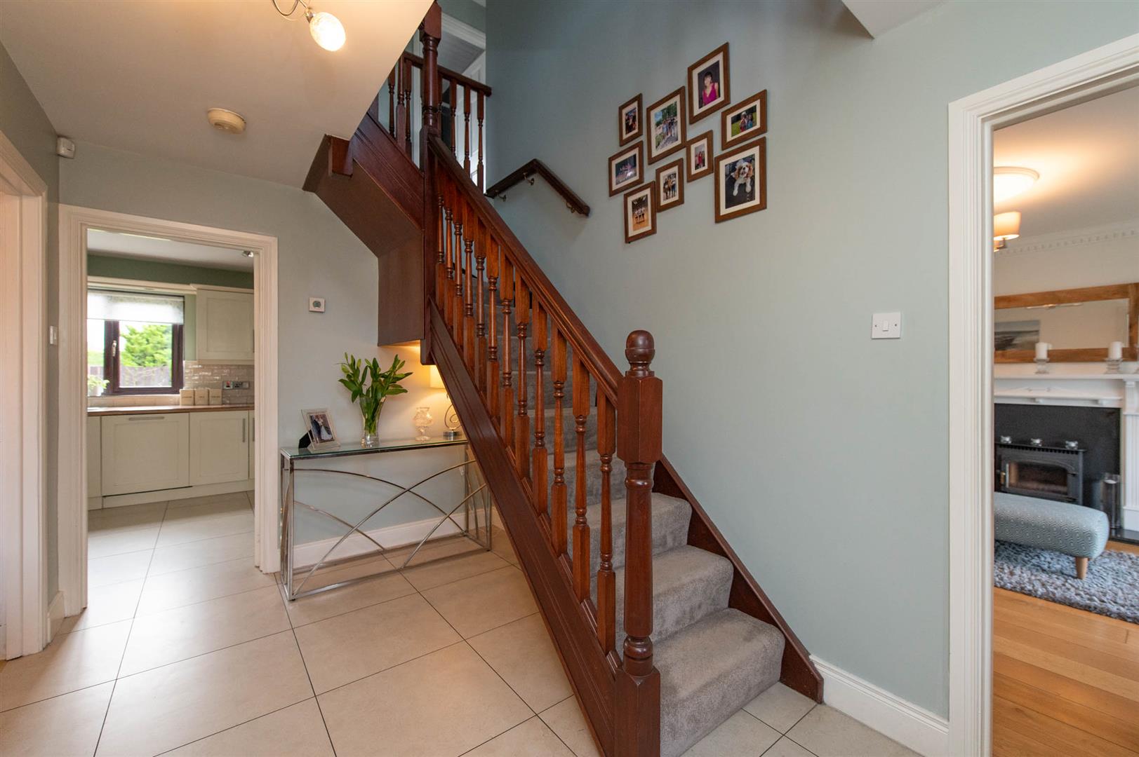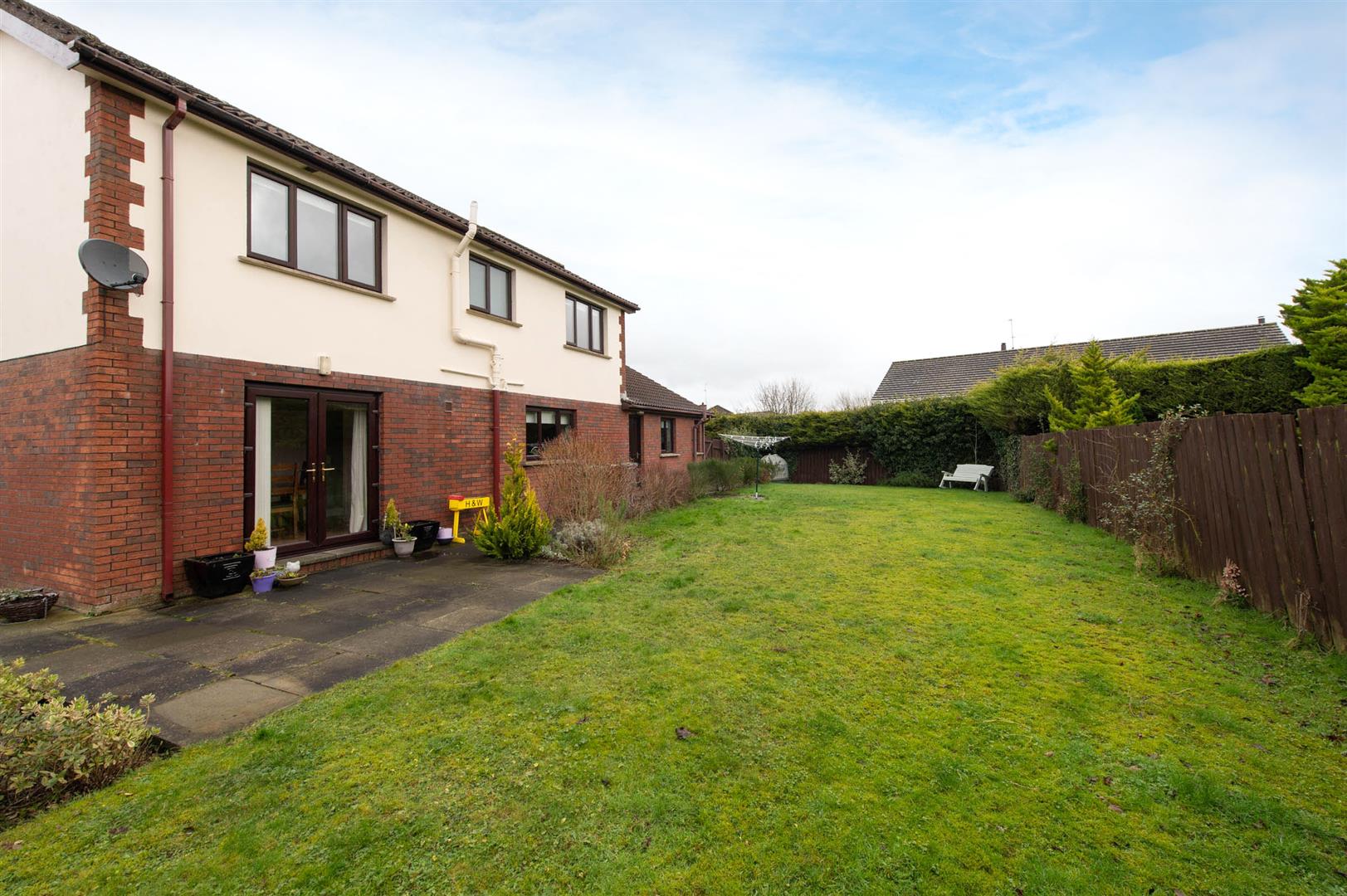 Newly laid carpet on stairs and landing. Landing with access to Bedrooms, Bathroom, Hot press with the added benefit of a slingsby ladder being installed for easy access to the loft. Bedroom one with newly laid carpet, walk in wardrobe and ensuite comprising corner shower cubicle, W.C and wash hand basin with recessed lighting. Bedroom two with carpet laid and built in wardrobe. Bedroom three again with freshly laid carpets and built in wardrobe and rear view aspect. Bedroom four is a great sized fourth bedroom with carpet laid and the rear view aspect. Family Bathroom, fully tiled with recessed light, comprising free standing Bath, sink with vanity beneath, W.C, heated towel rail and a new installed corner shower encloser.