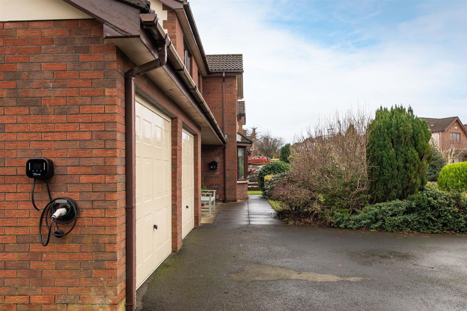 Stunning red brick frontage with grass lawn and mature shrubs, recently laid tarmac driveway in 2023 allowing plenty of parking for the family, leading to double Garage. To the rear you have a fully enclosed, private and south facing garden with grass lawn and perfectly placed paved patio area.