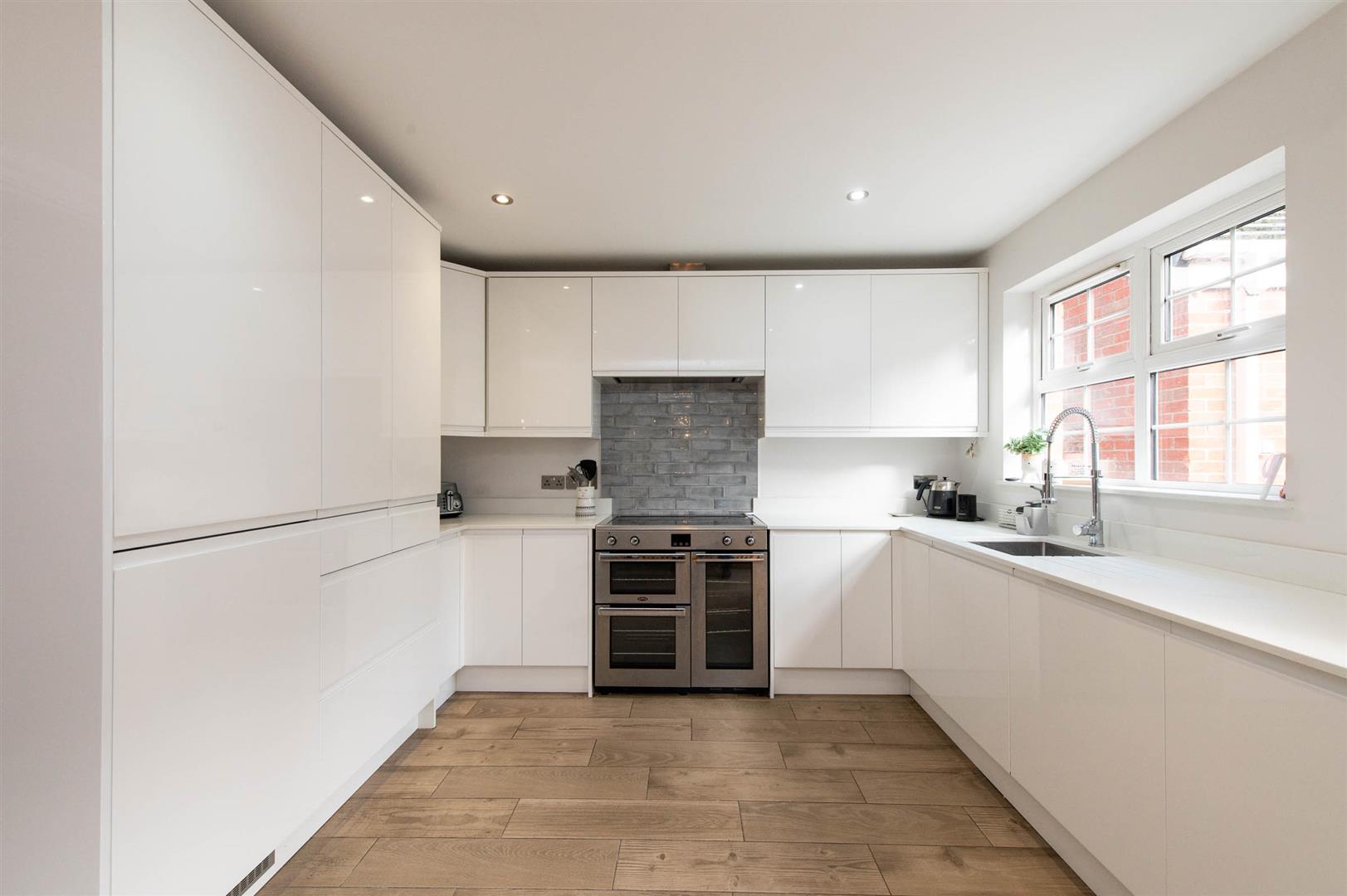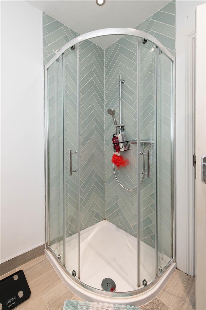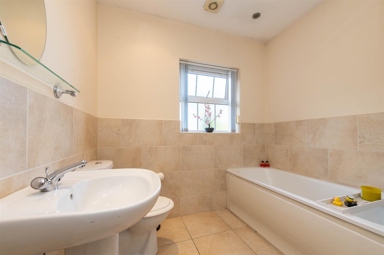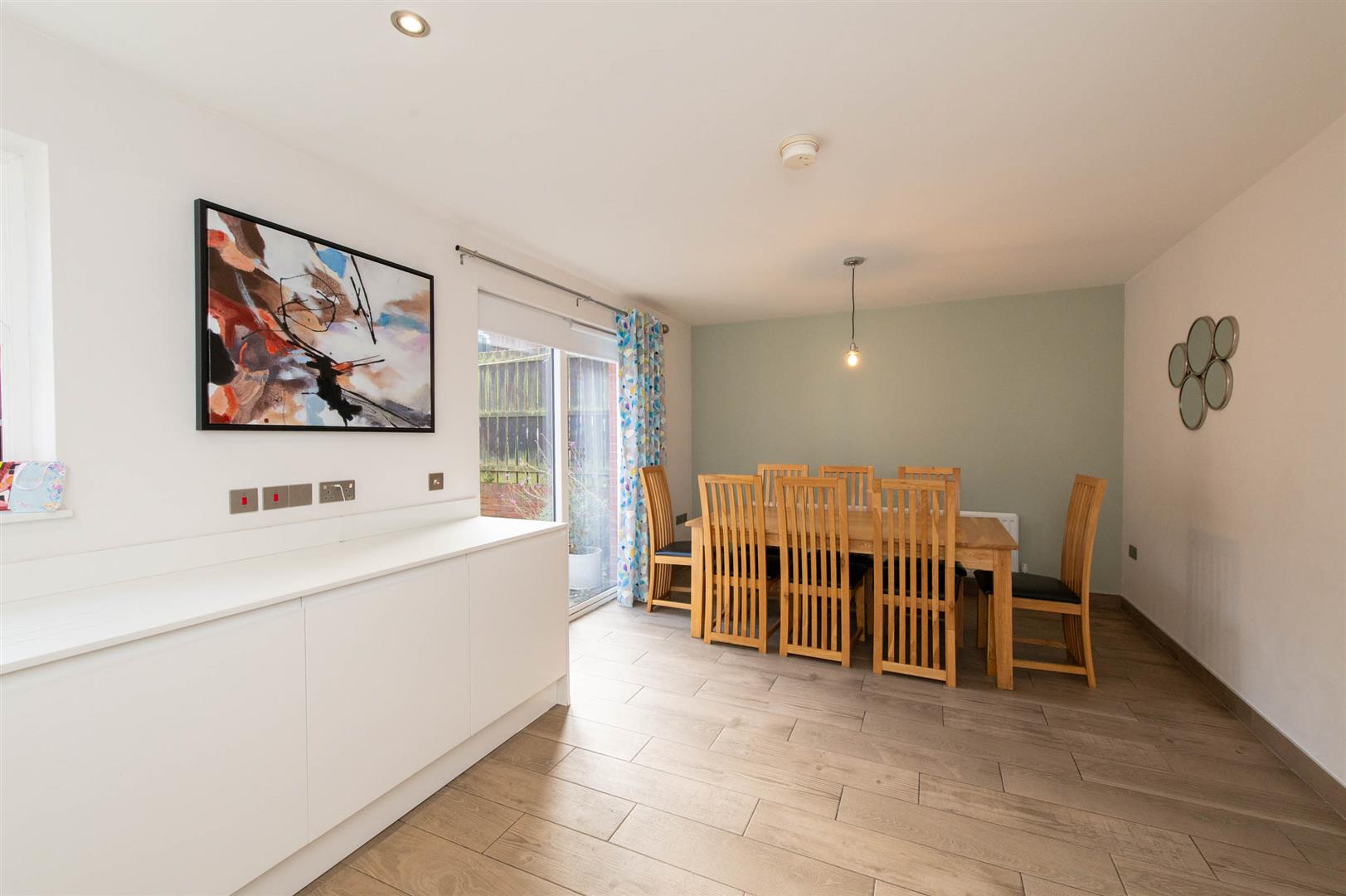 Bright, tiled entrance hallway with access to the ground floor W.C which comprises W.C and wash hand basin. Leading through to the Lounge with laminate flooring, dual aspect front windows with stove fitted. Open plan Kitchen with modern white gloss units comprising integrated Dishwasher & Fridge Freezer with space for free standing range Cooker, along with stunning wood effect flooring tiling, recessed lighting and the added benefit of the double sliding patio doors leading to outside space.