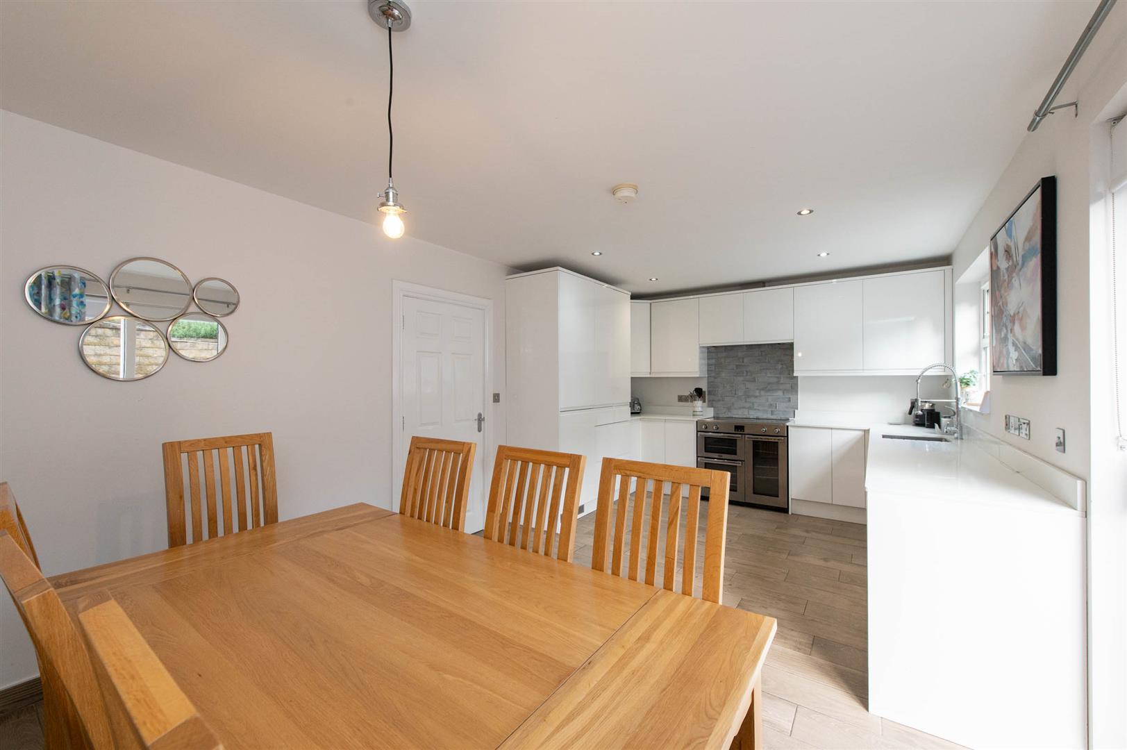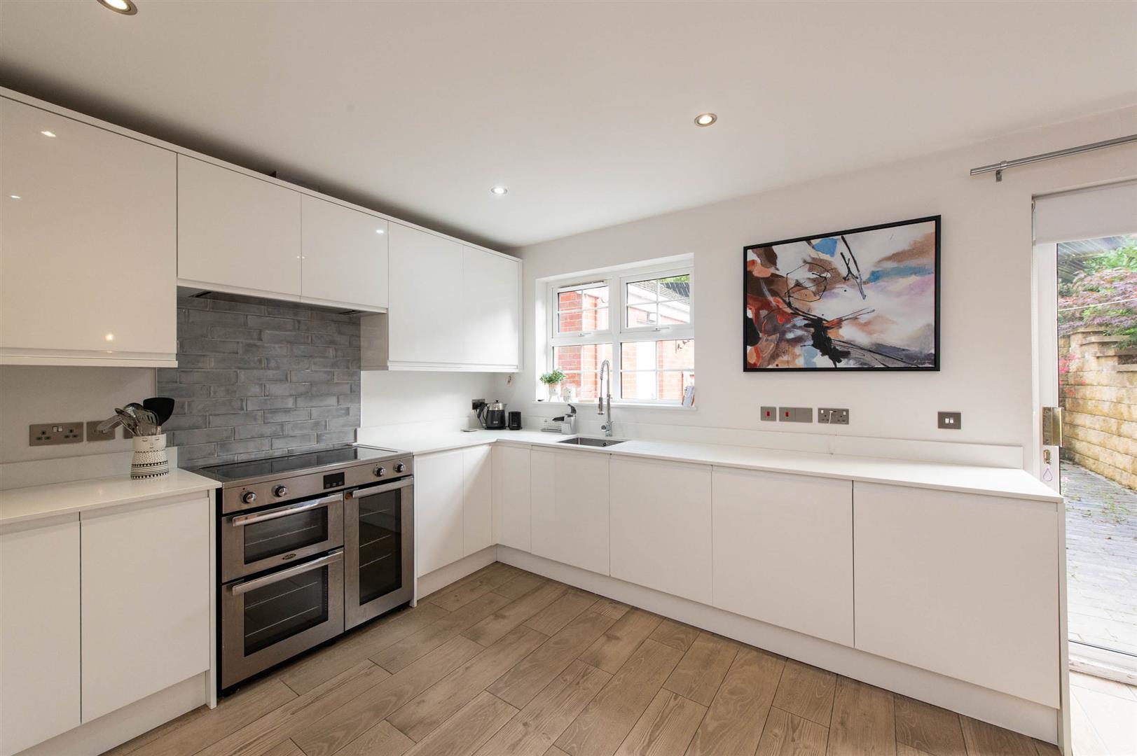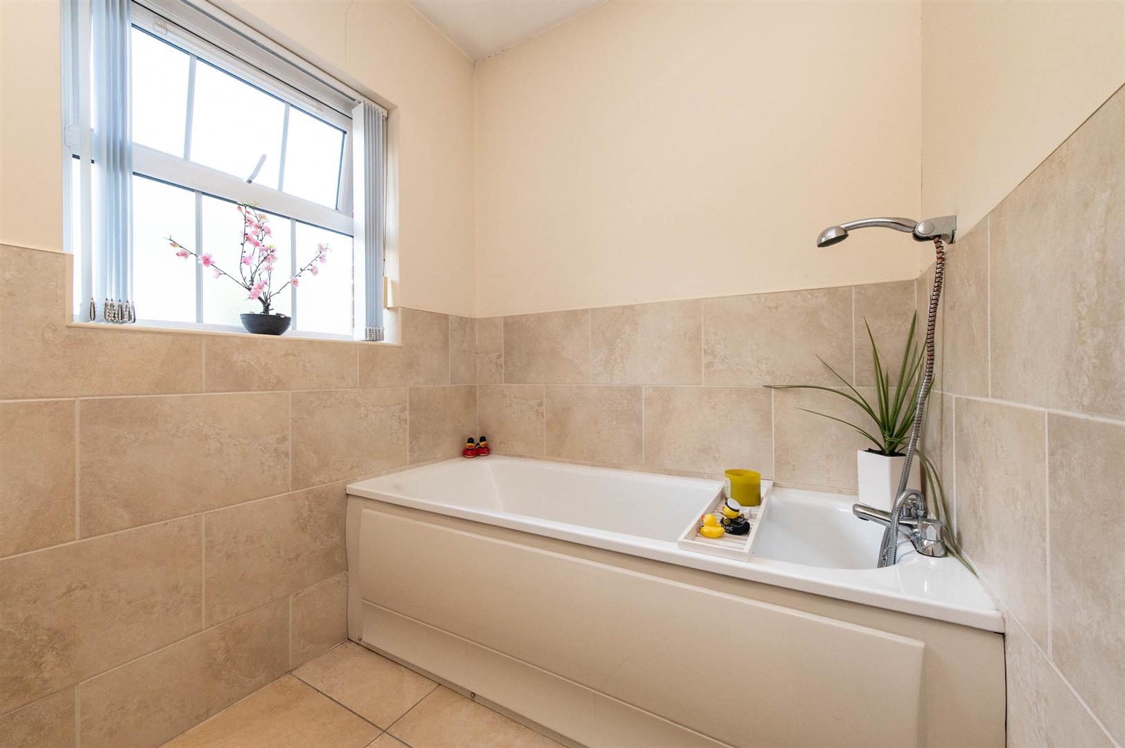Bright, tiled entrance hallway with access to the ground floor W.C which comprises W.C and wash hand basin. Leading through to the Lounge with laminate flooring, dual aspect front windows with stove fitted. Open plan Kitchen with modern white gloss units comprising integrated Dishwasher & Fridge Freezer with space for free standing range Cooker, along with stunning wood effect flooring tiling, recessed lighting and the added benefit of the double sliding patio doors leading to outside space.