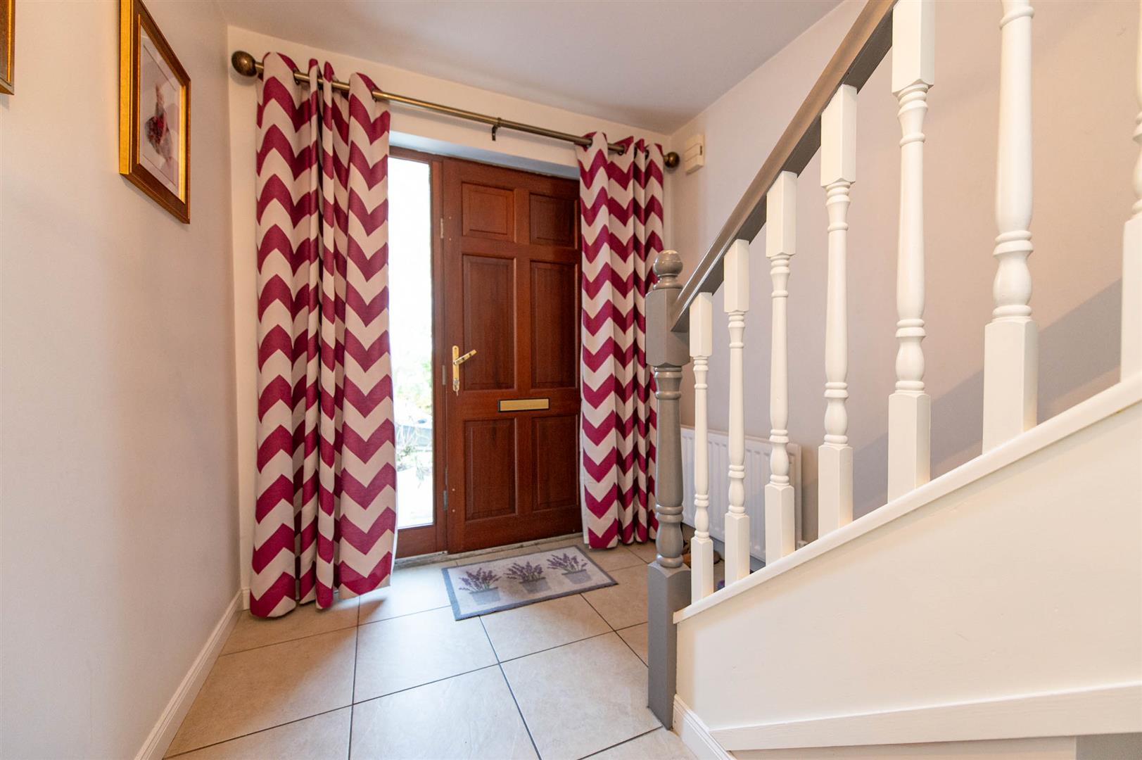 Stairs and landing with carpet laid & Hot Press located on landing. Bedroom one with carpet laid, built in storage and Ensuite. Ensuite comprises tiled floor, corner shower cubicle, W.C and wash hand basin. Bedroom two with rear facing aspect and carpet laid. Bedroom three a good sized third bedroom with carpet laid. Bathroom with half tiled walls, tiled floor comprising Bath, Wash hand basin and W.C with recessed lighting.