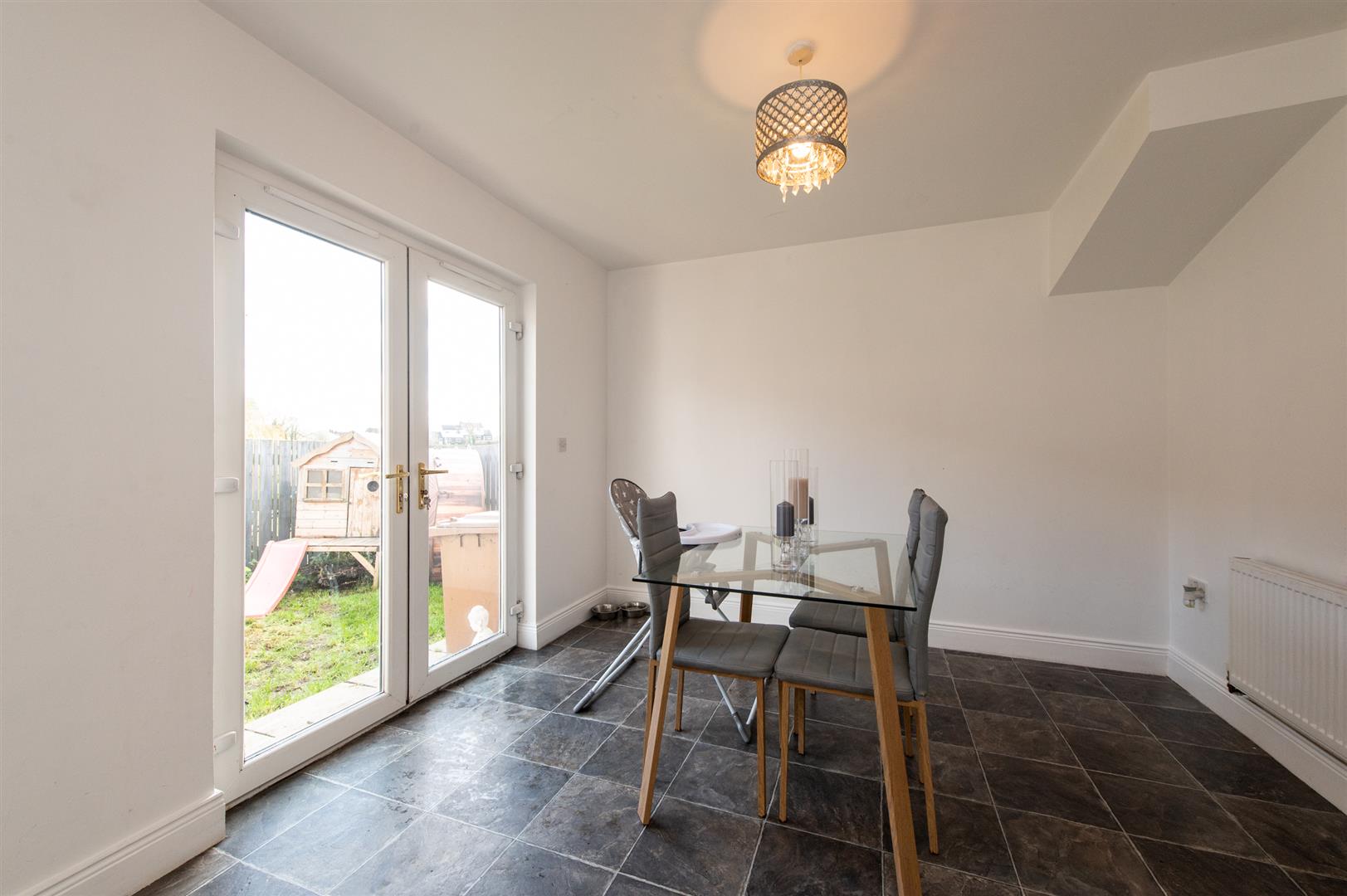 Entrance hallway with laminate flooring with access to the ground floor W.C. Spacious lounge with laminate flooring and dual window aspect. Dining area with double patio doors, vinyl flooring open plan to fitted Kitchen comprising integrated Hob & Oven, space for Washing machine & Fridge Freezer.