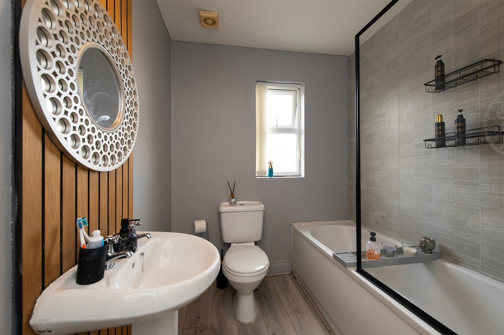 Stairs and landing laid in carpet. Bedroom one with laminate flooring and rear view aspect. Bedroom two with laminate flooring and front facing aspect. Bedroom three a single bedroom again with laminate flooring. Bathroom comprising three piece white bathroom suite to include W.C, Wash Hand Basin & Bath with Shower overhead.
