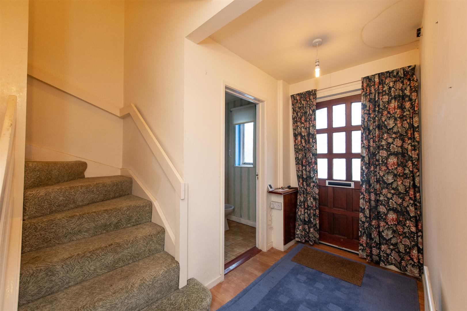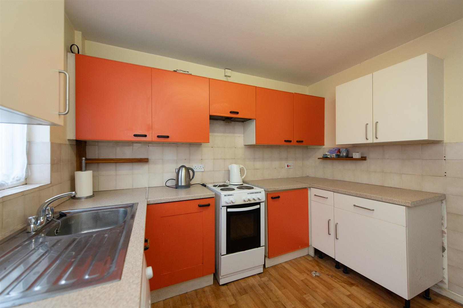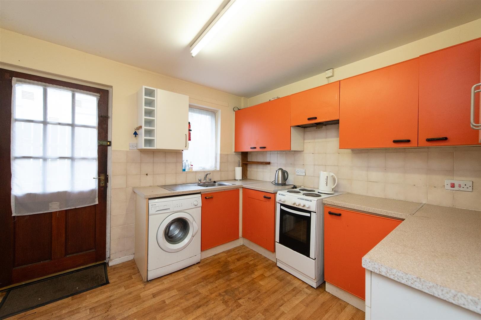Entrance hallway with vinyl flooring laid. Access to the ground floor W.C from hallway, comprising wash hand basin and W.C. Storage space under stairs. Large Lounge with carpet laid and open fire. Fitted kitchen in need of modernisation but with great potential with range of fitted units and space for appliances as is.